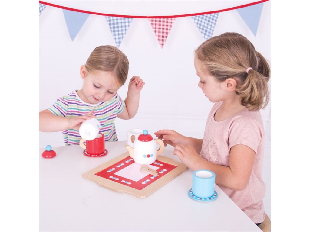Čaj pro dva? Naši nejmenší si mohou vyzkoušet své hostitelské dovednosti s touto dřevěnou čajovou sadou a podnosem Bigjigs Toys. Tato dřevěná herní sada má vše, co potřebují k uspořádání dokonalého čajového večírku. Obsahuje čajovou konvici s poklicí, 2 dřevěné šálky a podšálky, cukřenku s poklicí, 2 vařečky, konvičku na mléko a tác. Tento rozkošný čajový servis podporuje kreativní a nápadité hraní rolí, rozvíjí sociální dovednosti a zlepšuje obratnost. Vyrobeno z vysoce kvalitních, zodpovědně získaných materiálů. Splňuje aktuální evropské bezpečnostní normy. Hlavní vlastnosti: obsahuje čajovou konvici, šálky, podšálky, cukřenku, vařečky, konvičku na mléku a tácpodporuje kreativitu a nápaditostrozvíjí sociální dovednostizlepšuje obratnost a motorikuDoplňkové parametry