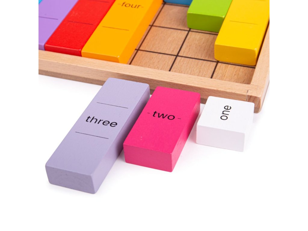 Pomocí jednoduchého puzzle mohou děti přirozeně a samostatně objevovat vztahy mezi čísly a rozvíjet nejen základy sčítání, ale poodhalovat i hlubší vlastnosti desítkové soustavy, či třeba poměry. Čísla a jejich význam si mohou fyzicky osahat, což významně přispívá pochopení jejich podstaty. Pestrými barvami tabulka snadno upoutá dětskou pozornost a může dále přispět k lepšímu soustředění. Všechny součásti jsou vyrobeny z kvalitního, zodpovědně získaného dřeva a lakovány nezávadnými barvami. Hlavní vlastnosti: základna a 19 dílů skládačkypuzzle a didaktická pomůckaatraktivní dřevěné zpracováníDoplňkové parametry