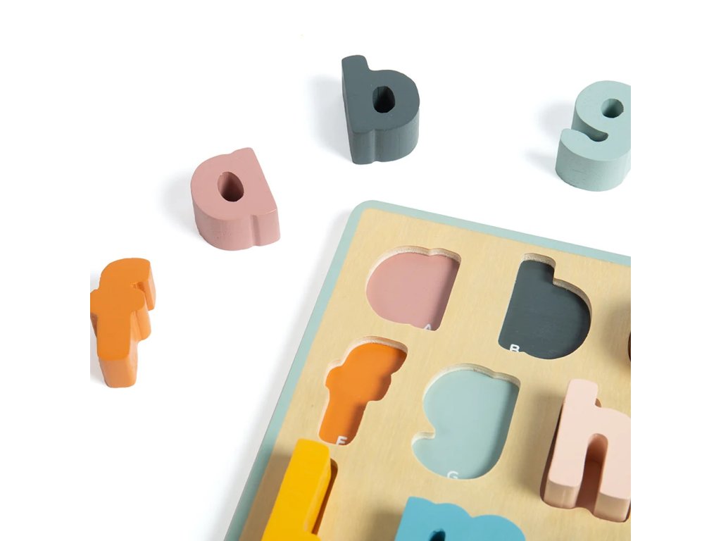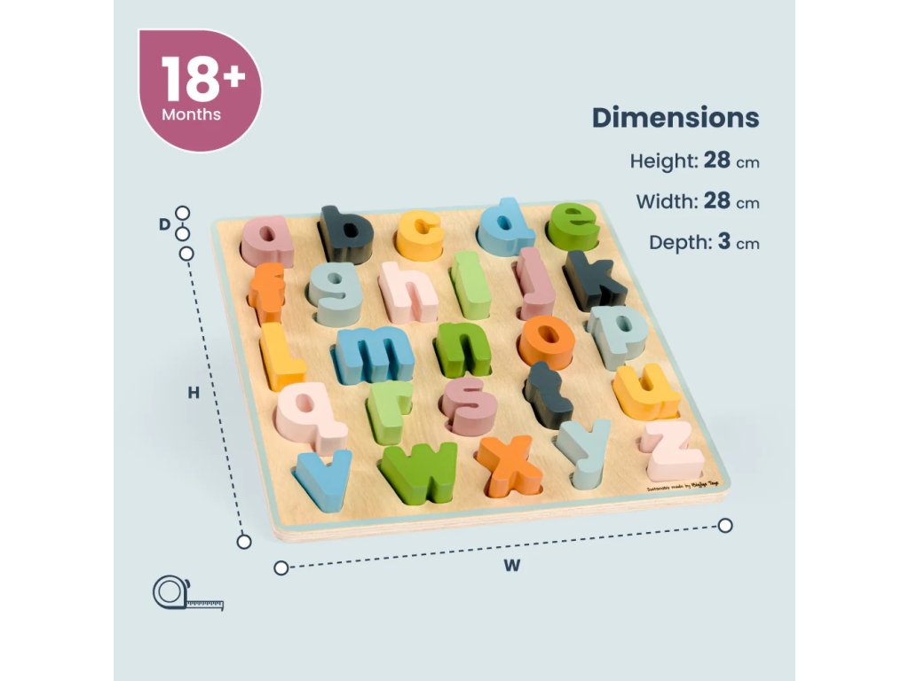 Pomocí této dřevěné pestrobarevné abecedy bude pro děti učení písmenek hračka. Každé písmenko pastelové barvy je barevně sladěno se svým základním otvorem, což pomáhá dětem rozvíjet schopnost zapamatování a rozpoznávání. Dílky jsou robustní, akorát pro malou dětskou ručku. Pomáhá rozvíjet zručnost, přizpůsobivé dovednosti a koncentraci. Vyrobeno ze dřeva s certifikátem FSC®. Hlavní vlastnosti: rozvíjí zručnost, přizpůsobivé dovednosti a koncentraci vyrobeno z udržitelného dřeva s certifikací FSC® vyhovuje současným evropským bezpečnostním normámobsahuje 26 dílků Značka a certifikát FSC® (Forest Stewardship Council) zaručuje, že dřevo, ze kterého byl produkt vyroben, nebylo vytěženo nelegálně a pochází z lesů obhospodařovaných šetrným či přírodě blízkým způsobem, ve kterém jsou dodržovány přísné environmentální a sociální požadavky. Značka FSC® na výrobku znamená, že svým nákupem pomáháte chránit lesy a podporujete šetrné, odpovědné či přírodě blízké hospodaření, díky kterému jsou naše lesy stabilnější, zdravější, mají přirozenou druhovou skladbu a lépe odolávají negativním následkům klimatických změn.Doplňkové parametry