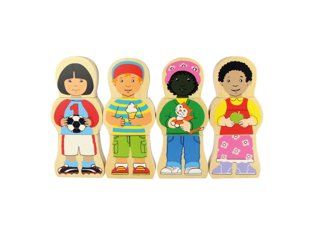Děti mají za úkol k sobě správně přiřadit jednotlivé části postaviček dětí. Jednotlivé dílky jsou vybaveny skrytými magnety.Doplňkové parametry