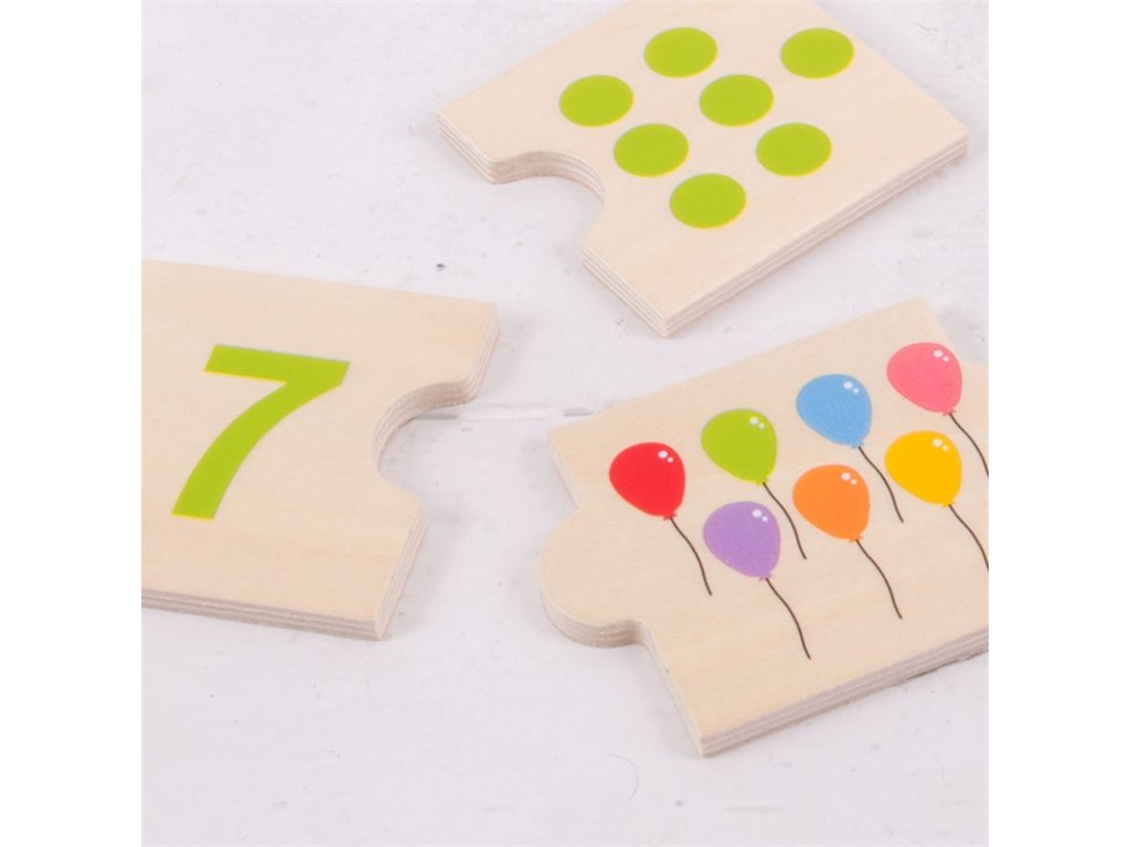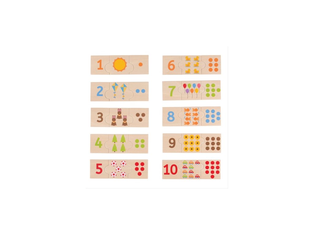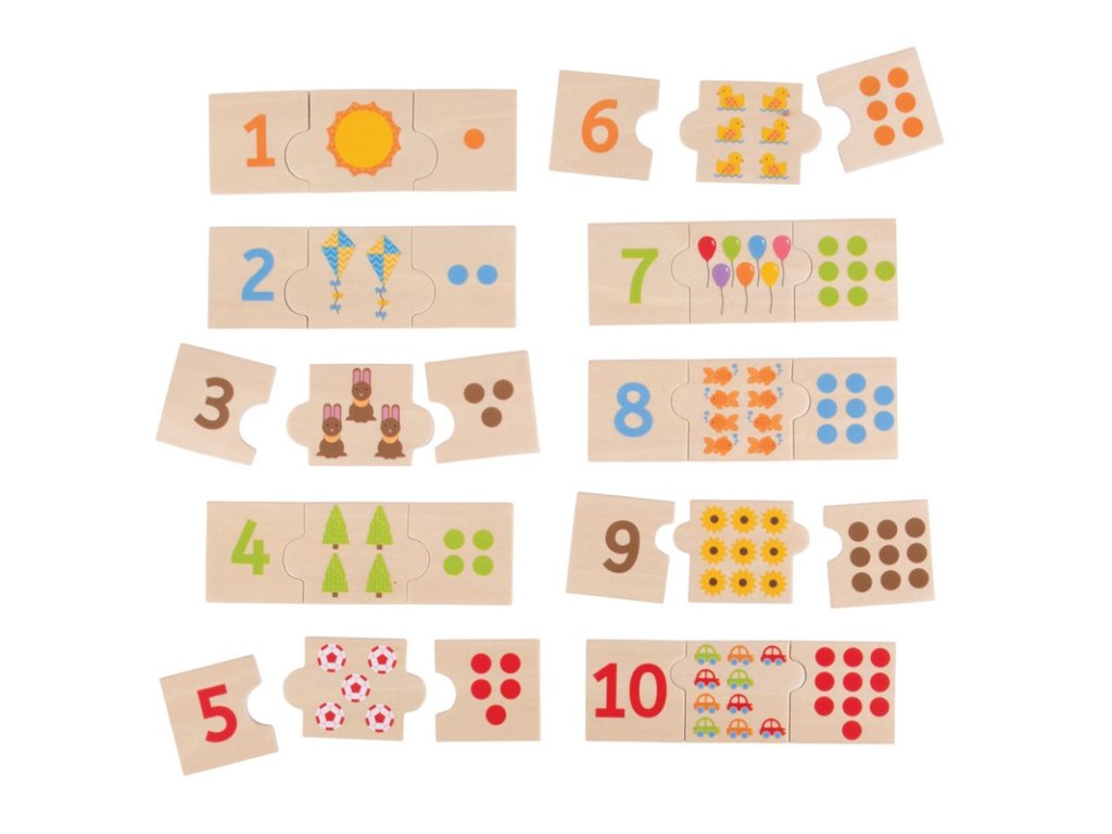 Učení je zábava. S 30-ti skládacími dílky puzzle se děti naučí hravou formou počtům od 1 do 10. Skládačka s jednoduchými ilustracemi a jasnými barvami zaujme každé zvídavé dítě. Skvělý způsob, jak podporovat zručnost, motoriku, rozvíjet komunikaci, rozpoznávání tvarů a trpělivost. Děti lze také povzbudit pro další učení tak, aby mluvily o tom, co vidí na dílcích. Hlavní vlastnosti: 30 dílků puzzlevyrobeno z vysoce kvalitních materiálůodpovídá současným evropským bezpečnostním normámDoplňkové parametry