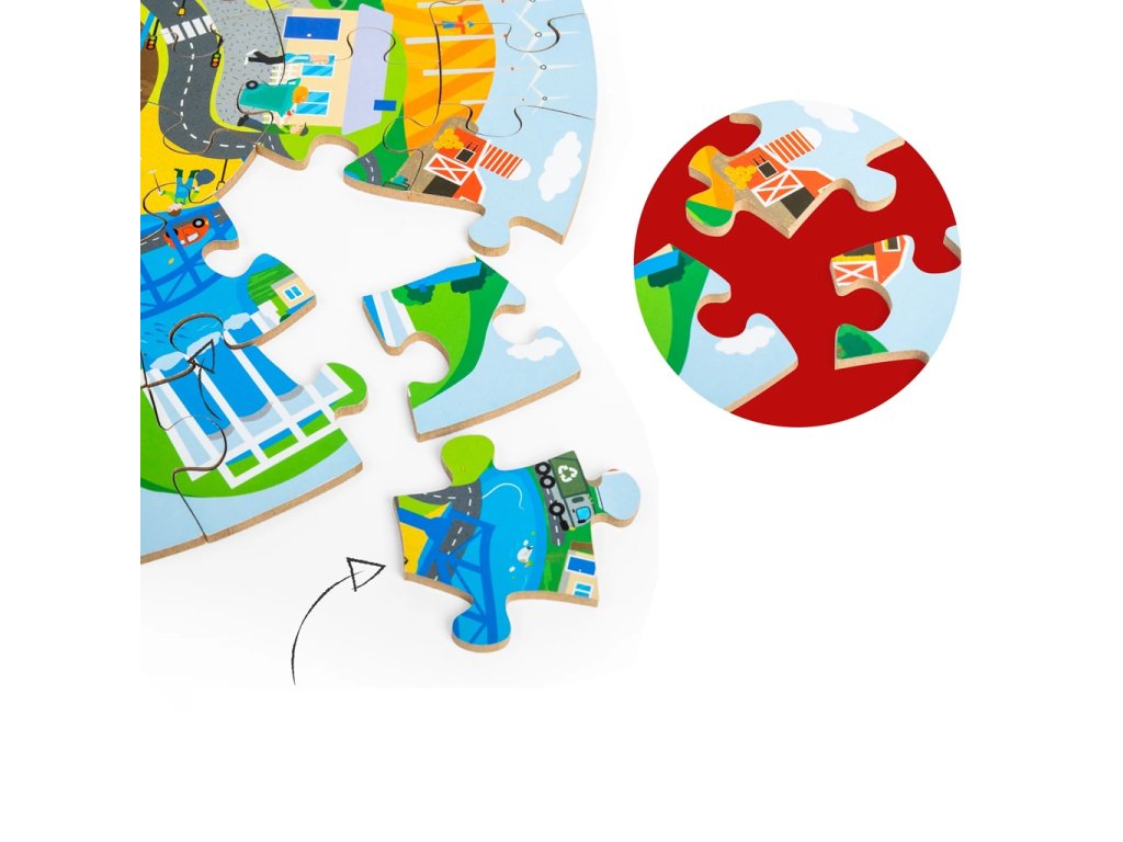 Kulaté puzzle s tématikou recyklace. Ukáže dětem co znamená recyklovat a co vše můžeme udělat abychom pomohli našemu životnímu prostředí. Stavět ho můžou děti od tří let. Procvičí si přitom schopnost soustředění, fantazii a zjistí něco nového o recykaci. Hlavni vlastnosti: vhodné od 3 letkrásné barevné zpracovánínaučí děti něco o recyklaciDoplňkové parametry