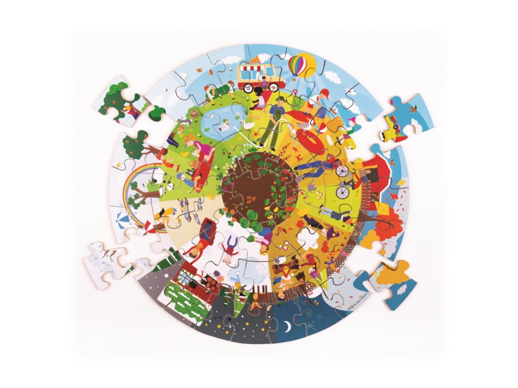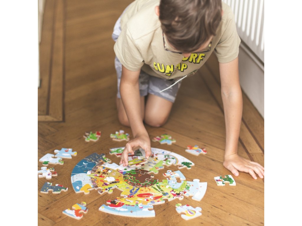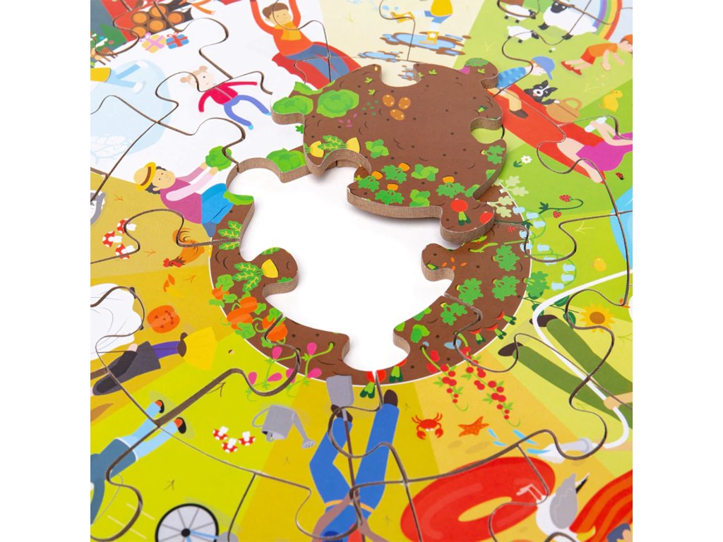Toto 50 dílkové pestrobarevné dřevěné podlahové puzzle bylo pečlivě vytvořeno a navrženo tak, aby zaujalo. Spojte všechny dílky dohromady a vytvořte nádhernou 360 stupňovou scénu a objevujte všechny 4 roční období. Vyrobeno z vysoce kvalitních a zodpovědně pocházejících materiálů. Vyhovuje současným evropským bezpečnostním normám. Hlavní vlastnosti: 50 dílkůpestrobarevná scéna všech ročních obdobíDoplňkové parametry