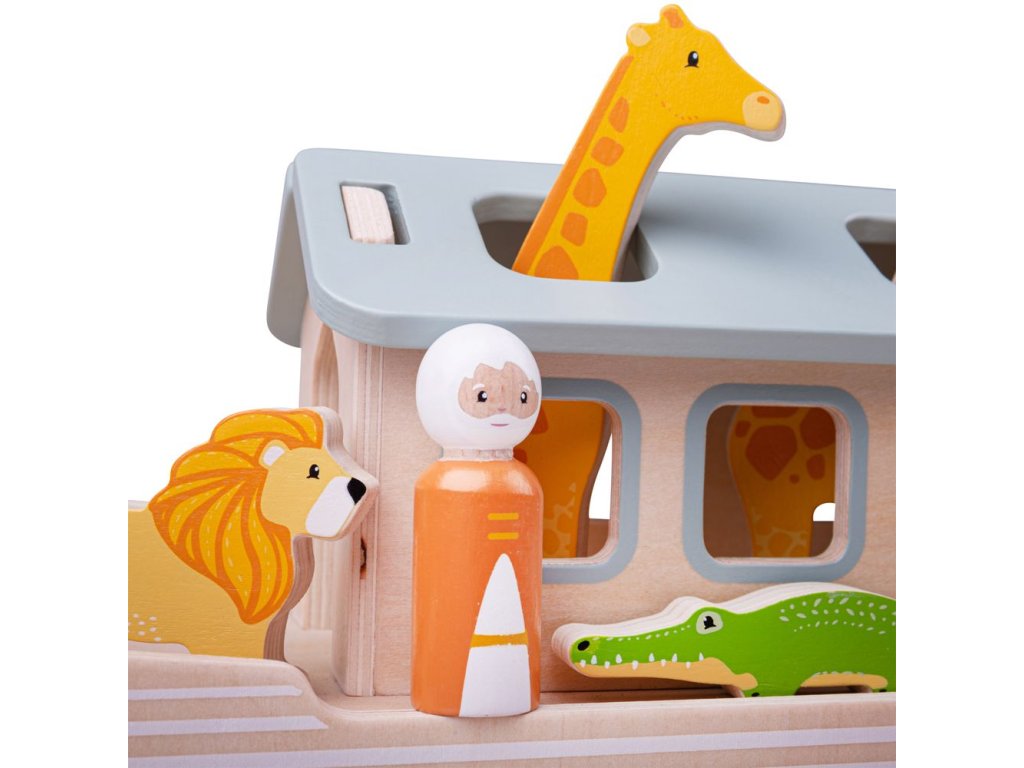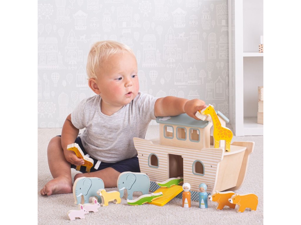 Ať zvířátka vstupují v párech, do archy se tak vejdou všechny. Noemova archa z FSC dřeva má sklopnou rampu a mnoho oken, dětem pomůže s rozvojem představivosti a kreativity.Malováno barvami bezpečnými pro děti, rozdílné barvy a textury stimulují dětskou mysl. Dřevěná archa je vyrobena z FSC materiálů, ze dřeva z eticky spravovaných lesů. Zvířátka jsou z hladkého dřeva a velikost mají tak akorát pro dětské ruce. V balení postavičky 12 zvířat a 2 osoby. Obsahuje postavičky: Noah a jeho žena2 medvědi2 sloni2 krokodýli2 zajíci2 lvi2 žirafy Hlavní vlastnosti: ideální pro procvičování motoriky dítěte100% FSC dřevo vyrobeno z vysoce kvalitních, zodpovědně získaných materiálůpomáhá rozvíjet obratnost a koordinaciobsahuje 14 postaviček Značka a certifikát FSC® (Forest Stewardship Council) zaručuje, že dřevo, ze kterého byl produkt vyroben, nebylo vytěženo nelegálně a pochází z lesů obhospodařovaných šetrným či přírodě blízkým způsobem, ve kterém jsou dodržovány přísné environmentální a sociální požadavky. Značka FSC® na výrobku znamená, že svým nákupem pomáháte chránit lesy a podporujete šetrné, odpovědné či přírodě blízké hospodaření, díky kterému jsou naše lesy stabilnější, zdravější, mají přirozenou druhovou skladbu a lépe odolávají negativním následkům klimatických změn.Doplňkové parametry