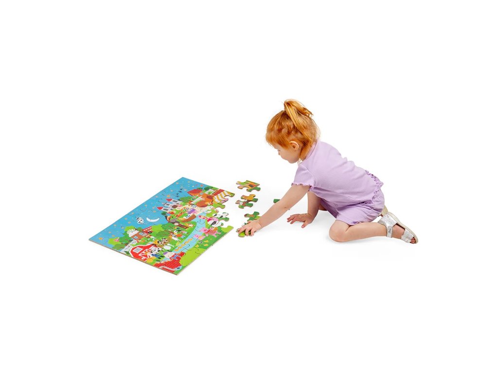 Tohle úžasné podlahové puzzle nabízí plno zábavy dětem i rodičům. Jednotlivé kusy puzzlíků díky svým rozměrům dobře padnou do dětské ruky a snadno se tak skládají dohromady. Pohádkové příběhy mohou být různé, rodičům i dětem se tak naskýtá nepřeberné množství pohádek podle fantazie. Děti získávají sociální dovednost, když vypráví, co která ilustrace představuje. Rozvíjí slovní zásobu, představivost, soustředění a jemnou motoriku. Vyrobeno z vysoce kvalitních a zodpovědně získaných materiálů, odpovídající současným evropským bezpečnostním normám. Hlavni vlastnosti: 48 dílůkrásné barevné zpracovánínekonečné množství pohádkových příběhůvhodné od 2 letDoplňkové parametry