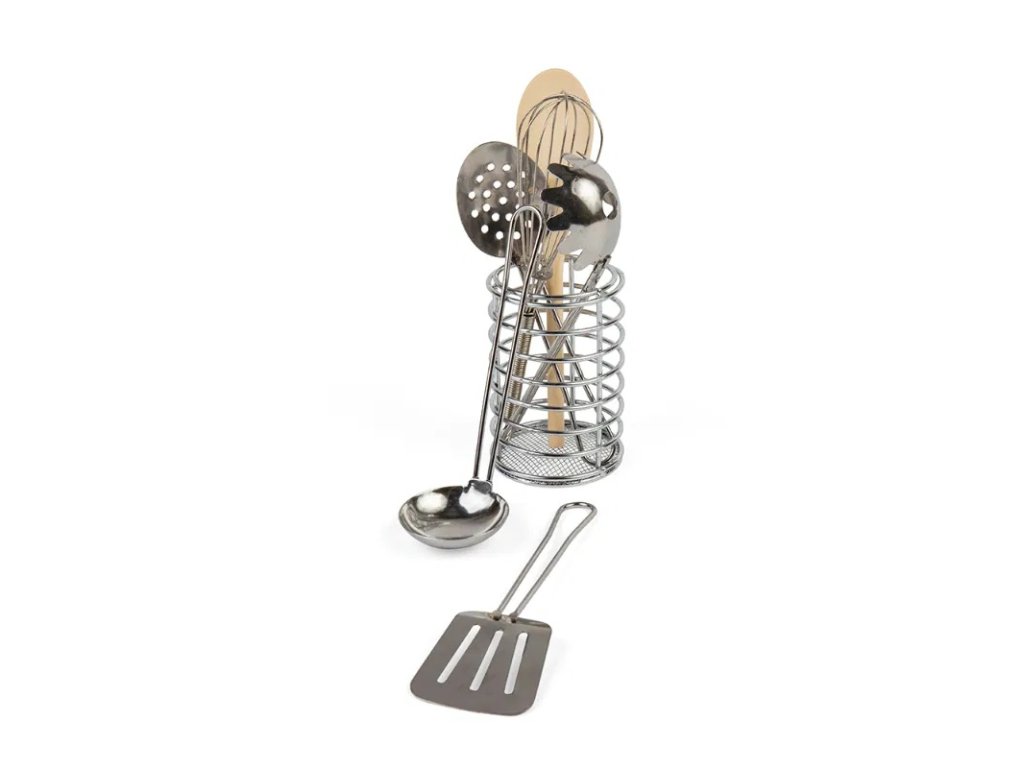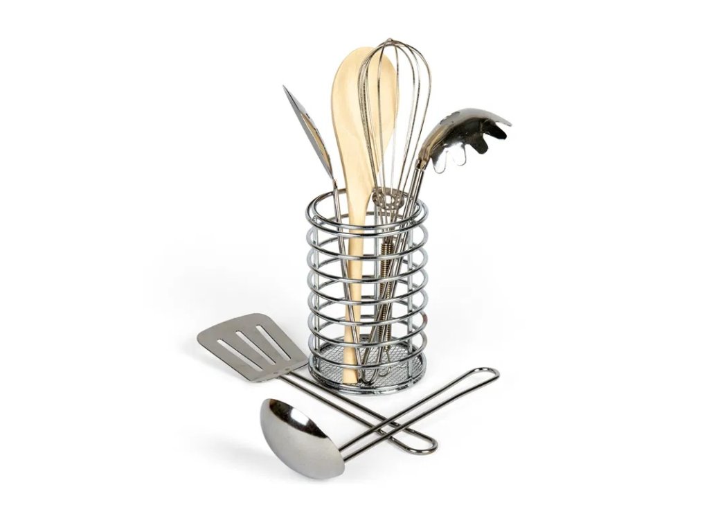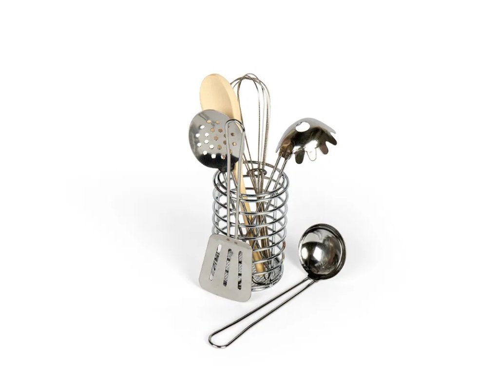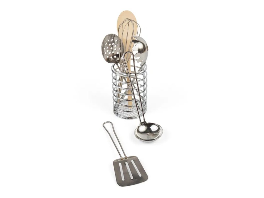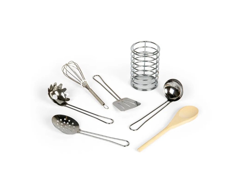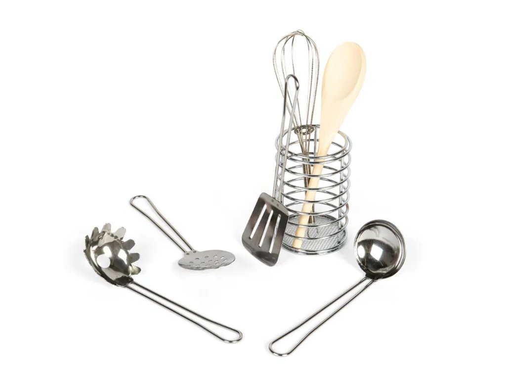 Za pomoci sady kuchyňského náčiní bude vaření a pečení hračkou! Sada určená pro malé kuchaře a kuchařky obsahuje šest náčiní pro děti včetně obracečky, děrované lžíce, naběračky, šlehací metly, naběračky na špagety a vařečky, uložené v praktické válcové nádobě. Děti mohou šlehat, míchat a servírovat a vyzkoušejí si různé kuchyňské činnosti a podpoří tak svou kreativitu. Hraní na role je skvělý způsob, jak rozvíjet sociální inteligenci, jazykové schopnosti, kreativní myšlení a komunikační dovednosti. Manipulace s kuchyňským náčiním zlepšuje jemnou motoriku a koordinaci ruka-oko. Náčiní je vyrobeno z prvotřídních kvalitních materiálů z odpovědných zdrojů a nabarveno netoxickými barvami a laky. Splňuje aktuální evropské bezpečnostní normy. Hlavní vlastnosti: 6 ks kuchyňského náčiní v nádobě: obracečka, děrovaná lžíce, naběračka, šlehací metla, naběračka na špagety a vařečkarozvíjí sociální inteligenci, jazykové schopnosti, kreativní myšlení a komunikační dovednostizlepšuje jemnou motoriku a koordinaci ruka-okopodporuje hraní na rolevyrobeno z vysoce kvalitních materiálůvhodné od 3 let věkuDoplňkové parametry