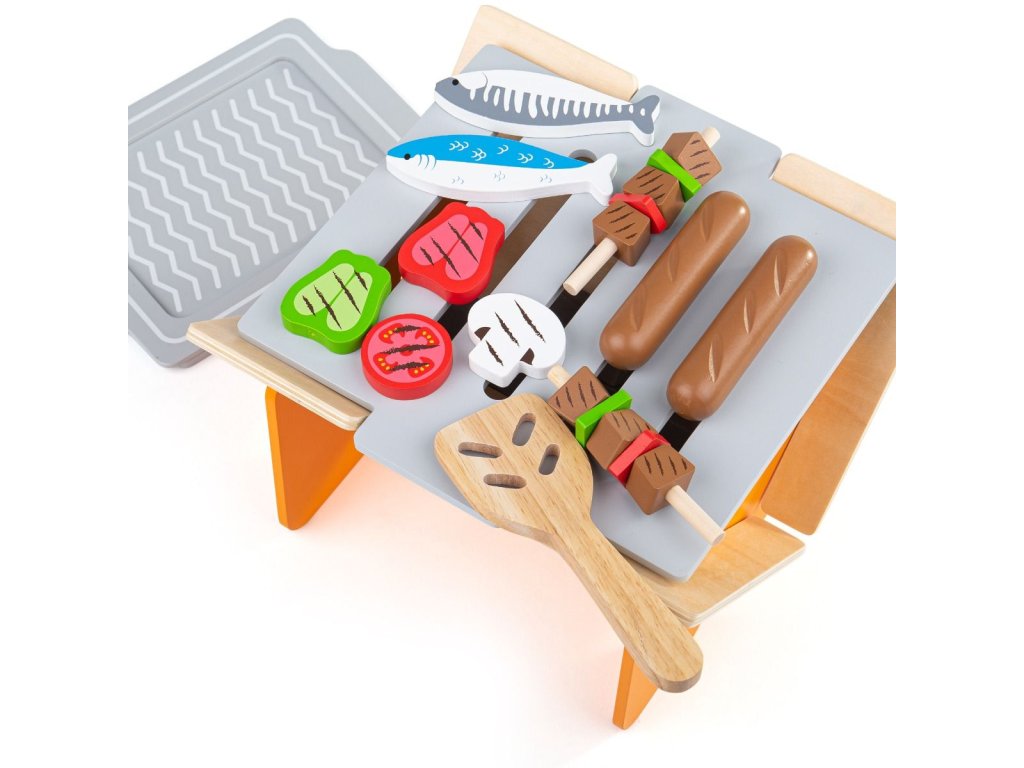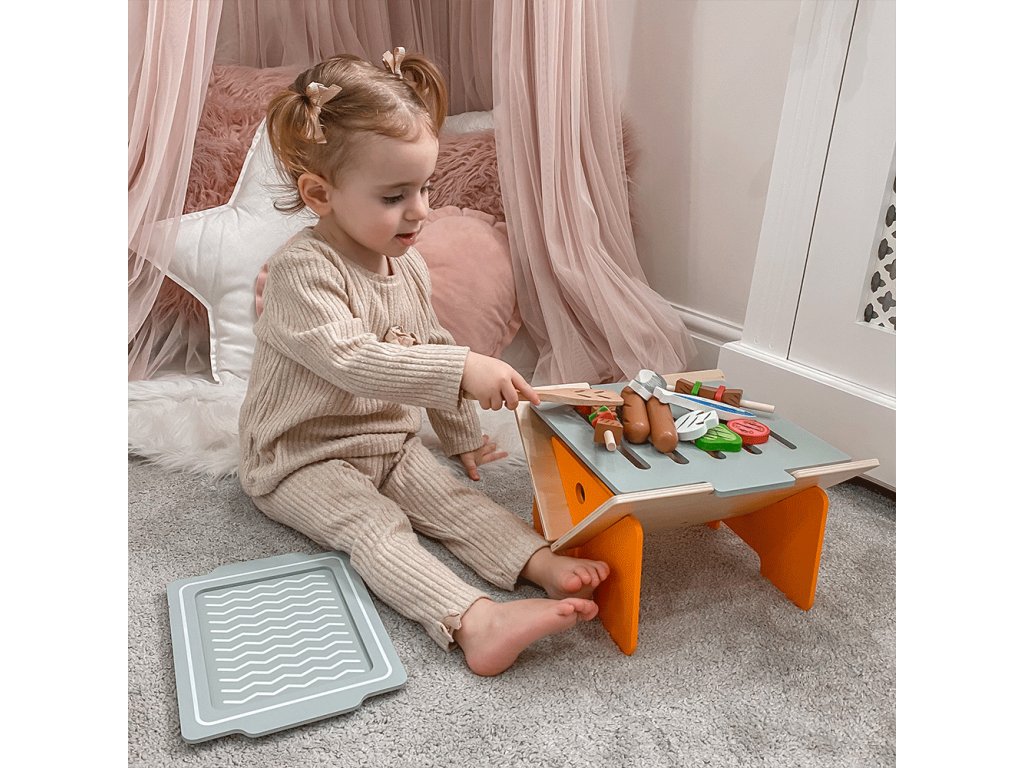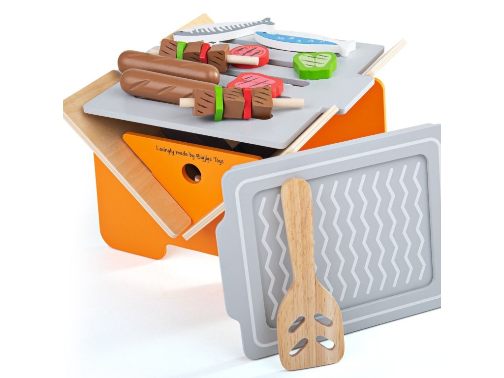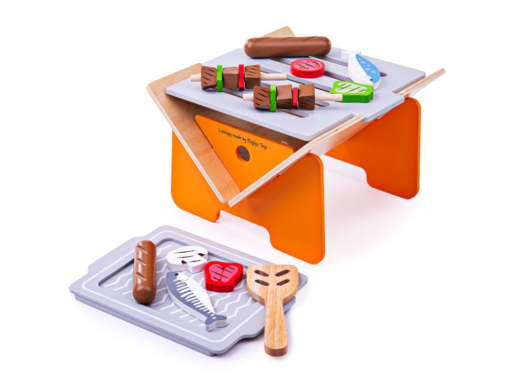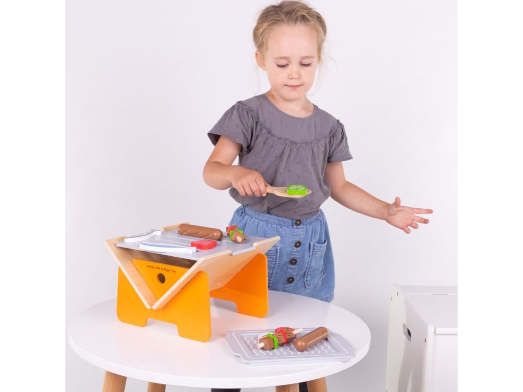 Zahradní párty u vás doma! Co si ugrilujete jako první? Dřevěný stolní gril obsahuje 10 ks jídla, obracečku, tácek a uhlíky. Všechny části lze do sebe jednoduše zasunout, k montáži tak nepotřebujete šroubky. Vyrobeno z kvalitních materiálů ze zodpovědných zdrojů. Splňuje evropské bezpečnostní standardy. Hlavní vlastnosti: 5 dílný gril, tác, obracečka a 10 ks jídlarobustní a odolné provedenívyrobeno s ohledy na udržitelnostDoplňkové parametry