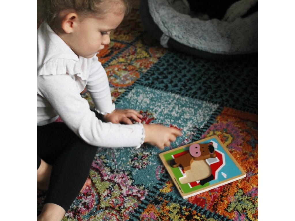 Ideální první dřevěné puzzle pro nejmenší. Robustní vkládací puzzle s velkými dílky, které vytvoří koníka. Skvělý způsob procvičení jemné motoriky, logického myšlení a poznávání tvarů a barev. Toto dřevěné puzzle pro batolata je dodáváno s hladkou dřevěnou základní deskou s malovanou scénou. Batolata mohou také procvičovat počítání dílků skládačky od 1 do 4. Pomáhá také rozvíjet jemné motorické dovednosti a zručnost.Vyrobeno z vysoce kvalitních, zodpovědně získaných materiálů. Malováno netoxickými barvami a laky. Splňuje aktuální evropské bezpečnostní normy. Vhodné od 12 měsíců. Hlavní vlastnosti: 4dílné dřevěné puzzleIdeální velikost puzzle pro batolataRozvíjí jemnou motoriku a zručnostVyrobeno z vysoce kvalitních, zodpovědně získaných materiálůDoplňkové parametry