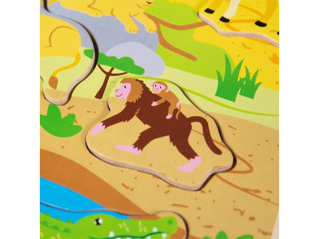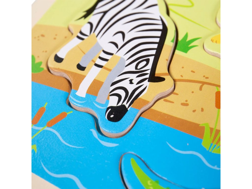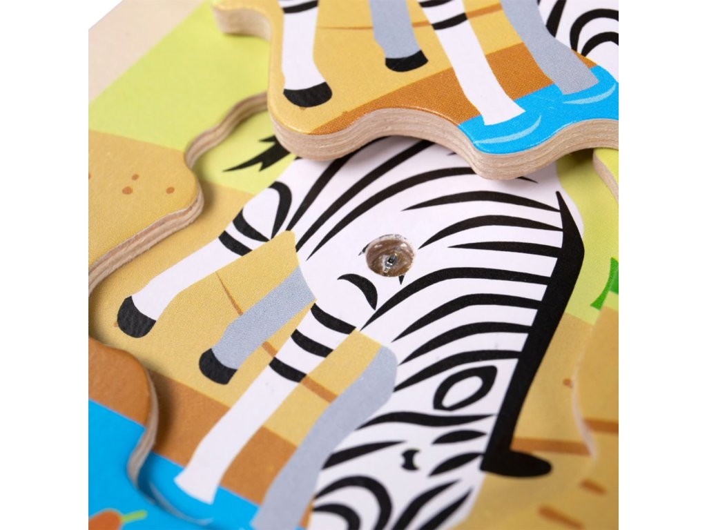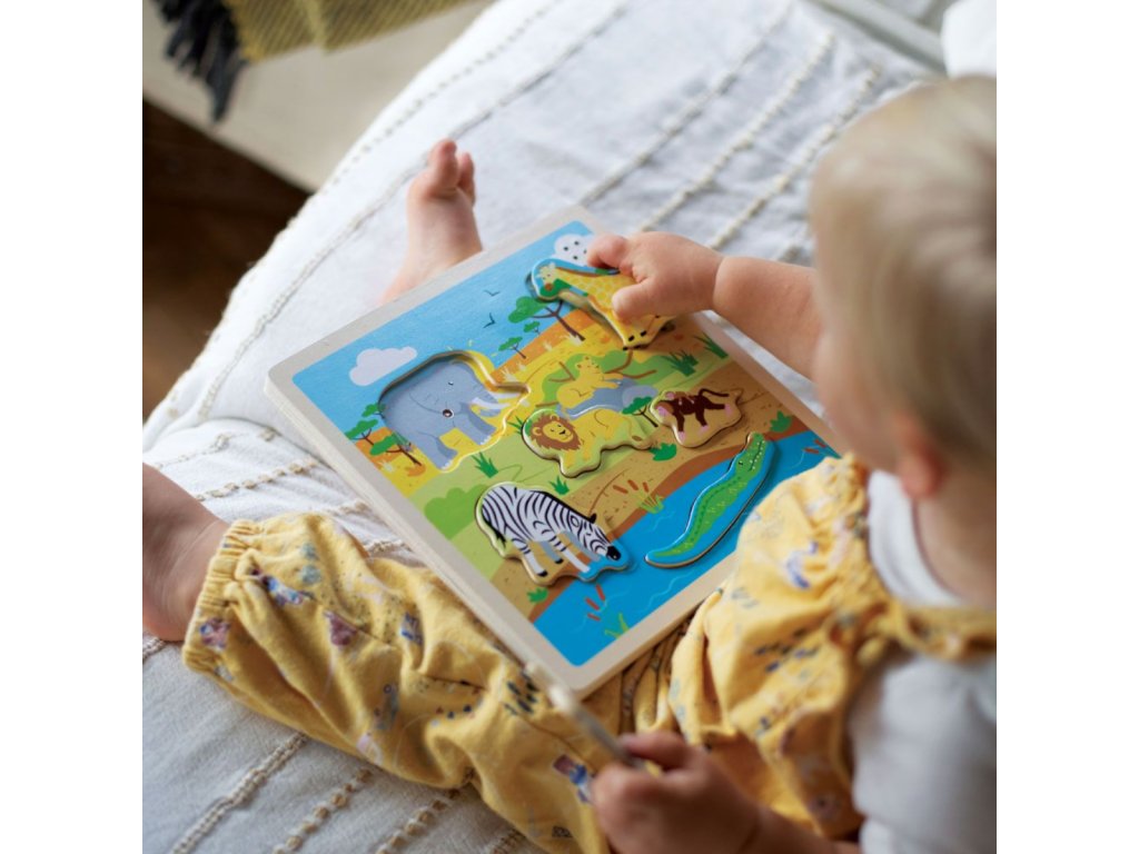 Nechejte děti rozpoznávat tvary i zvířátka a bavit se jejich roztomilými zvuky. Po umístění správného dílku do vkládačky se z vestavěného zařízení ozve charakteristický projev zvířete, který mohou správně přiřazovat, a zábavně tím rozvíjet své poznávací dovednosti. Snadno je přitom lze napodobováním zvuků vést hravým způsobem k prvním slůvkům. Dřevěné dílky jsou velikostí i oblými tvary přizpůsobeny k manipulaci malými dětskými ručičkami, jsou příjemné na dotek, a pomáhají tak stimulovat hmat. Pestrými barvami a roztomilými zvířecími tvářemi děti vkládačka snadno bezprostředně zaujme. Nabízí se také v dalších atraktivních motivech. Vyrobeno z kvalitního, zodpovědně získaného dřeva ošetřeného nezávadnými barvami či laky. Hlavní vlastnosti:základna a 6 dílků4 různá provedenímotivující zvukové efektyatraktivní a odolné zpracováníDoplňkové parametry
