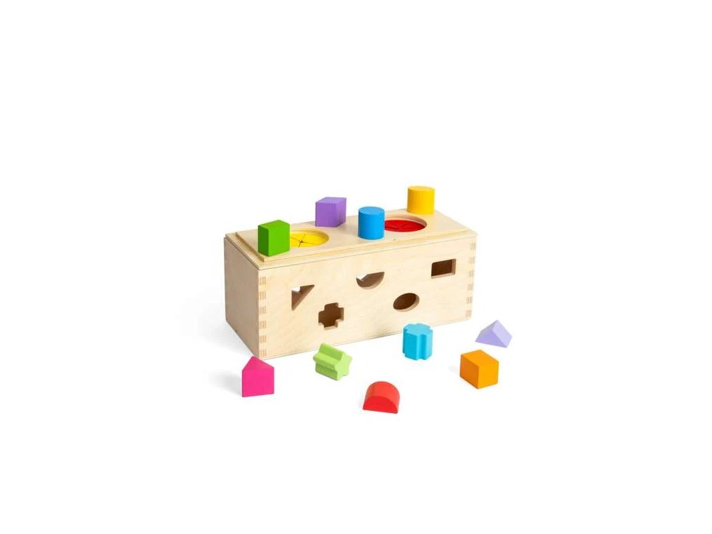 Vkládání a třídění tvarů je nejen zábavné, ale rozvíjí také hmat, smyslový vývoj a učí děti rozlišit různé tvary a barvy. Umístěte 10 tvarů do odpovídajících otvorů na stěnách dřevěné krabičky. Ruce strčte do dvou otvorů na horní straně, hmatejte uvnitř krabičky, rozpoznejte, na jaký tvar jste narazili a vytáhněte jej, abyste se přesvědčili, že jste jej určili správně. Třídění a rozpoznávání tvarů pomáhá dětem zlepšit motorické dovednosti a koordinaci ruka-oko. Kouzelná krabička je součástí vzdělávací řady Montessori hraček, je vyrobena z vysoce kvalitního a udržitelného dřeva s certifikací FSC® a opatřena netoxickými barvami a laky. Má odnímatelné víko pro lepší manipulaci s tvary. Splňuje aktuální evropské bezpečnostní normy. Hlavní vlastnosti: dřevěná krabička, 10 dřevěných tvarůodnímatelné víkovyrobeno ze dřeva s certifikací FSC®Montessori hračkazlepšuje motorické dovednosti a koordinaci ruka-okorozvíjí hmat a smyslové vnímáníod 12 měsíců věku Značka a certifikát FSC® (Forest Stewardship Council) zaručuje, že dřevo, ze kterého byl produkt vyroben, nebylo vytěženo nelegálně a pochází z lesů obhospodařovaných šetrným či přírodě blízkým způsobem, ve kterém jsou dodržovány přísné environmentální a sociální požadavky. Značka FSC® na výrobku znamená, že svým nákupem pomáháte chránit lesy a podporujete šetrné, odpovědné či přírodě blízké hospodaření, díky kterému jsou naše lesy stabilnější, zdravější, mají přirozenou druhovou skladbu a lépe odolávají negativním následkům klimatických změn.Doplňkové parametry