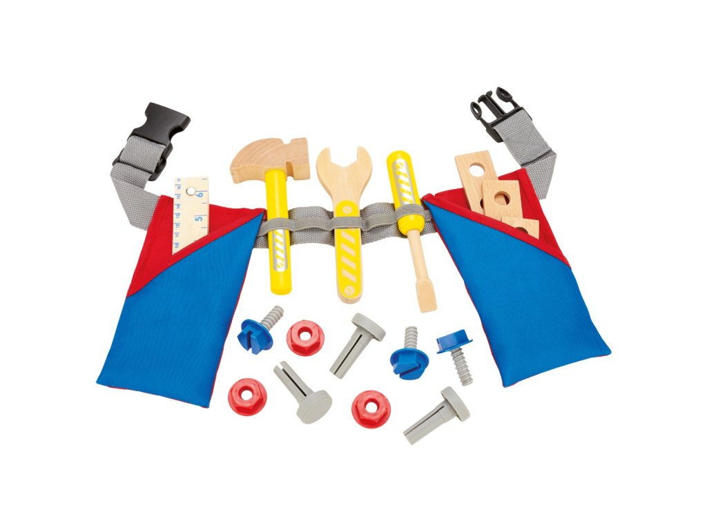 Dětský opasek na nářadí s nastavitelnou délkou obsahuje 17 dílů. Je vyroben z pevného plátna se zapínací sponou pomocí, které se snadno nasazuje a sundavá. Malí hobby řemeslníci si trénují své motorické dovednosti pomocí dětských nástrojů a mohou se nechat unášet svou kreativitou a představivostí. Barva použitá na nářadí je odolná vůči slinám a šetrná k pokožce. Dětský opasek lze prát v pračce do 30°. Varování! Nevhodné pro děti do 3 let. Používat pouze pod dohledem dospělé osoby.Doplňkové parametry