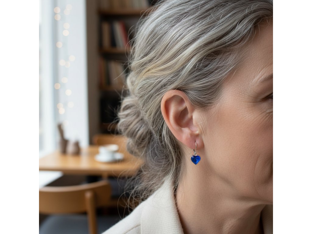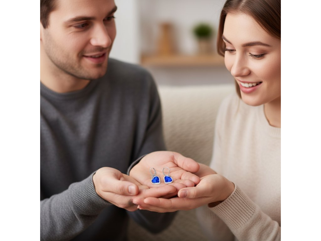 Blue náušnice srdíčko z chirurgické oceli SD749 + dárkové balení