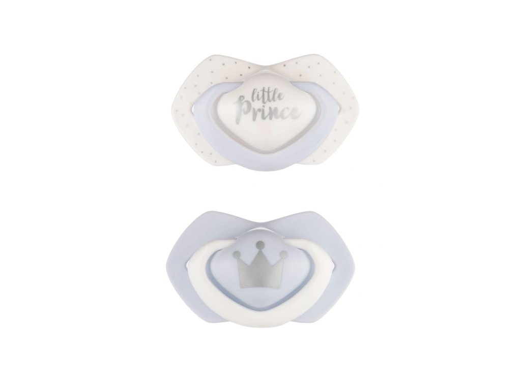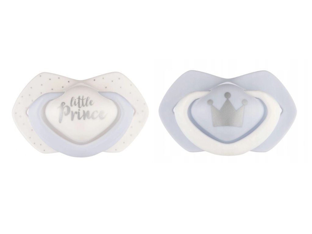 Canpol Babies 2 ks symetrických silikonových dudlíků, 0-6m, Little prince, modré