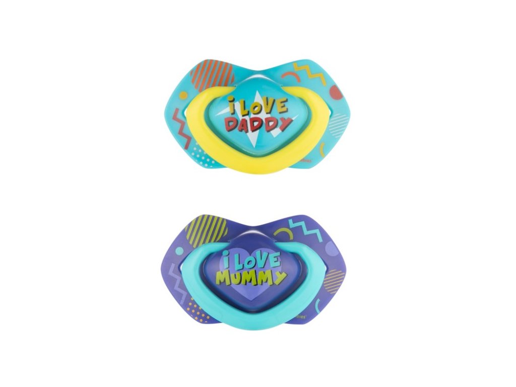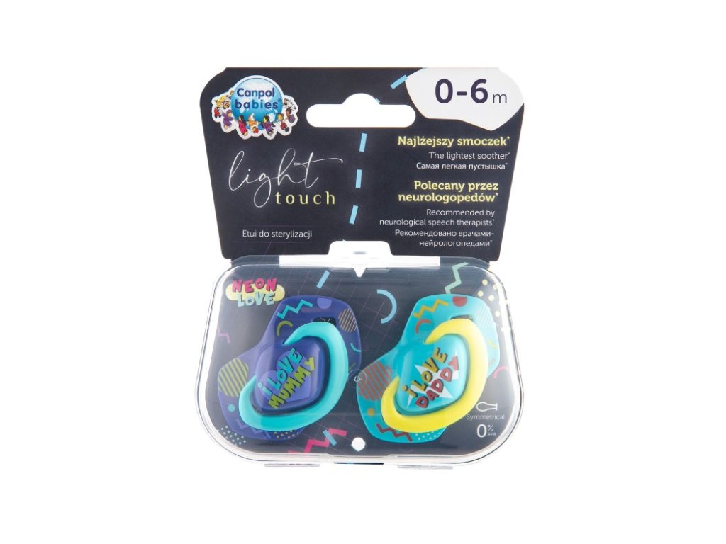 Canpol Babies 2 ks symetrických silikonových dudlíků, 0-6m, Neon Love Baby, modré