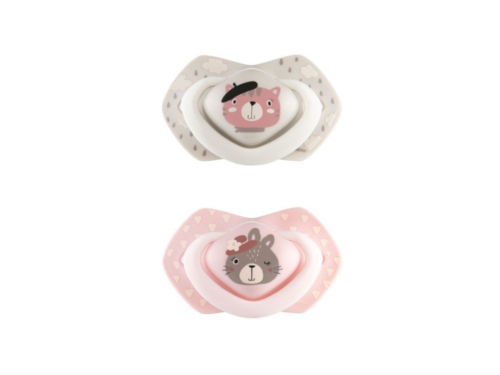 Canpol Babies 2 ks symetrických silikonových dudlíků, +18m, Bonjour Paris, růžová/šedá
