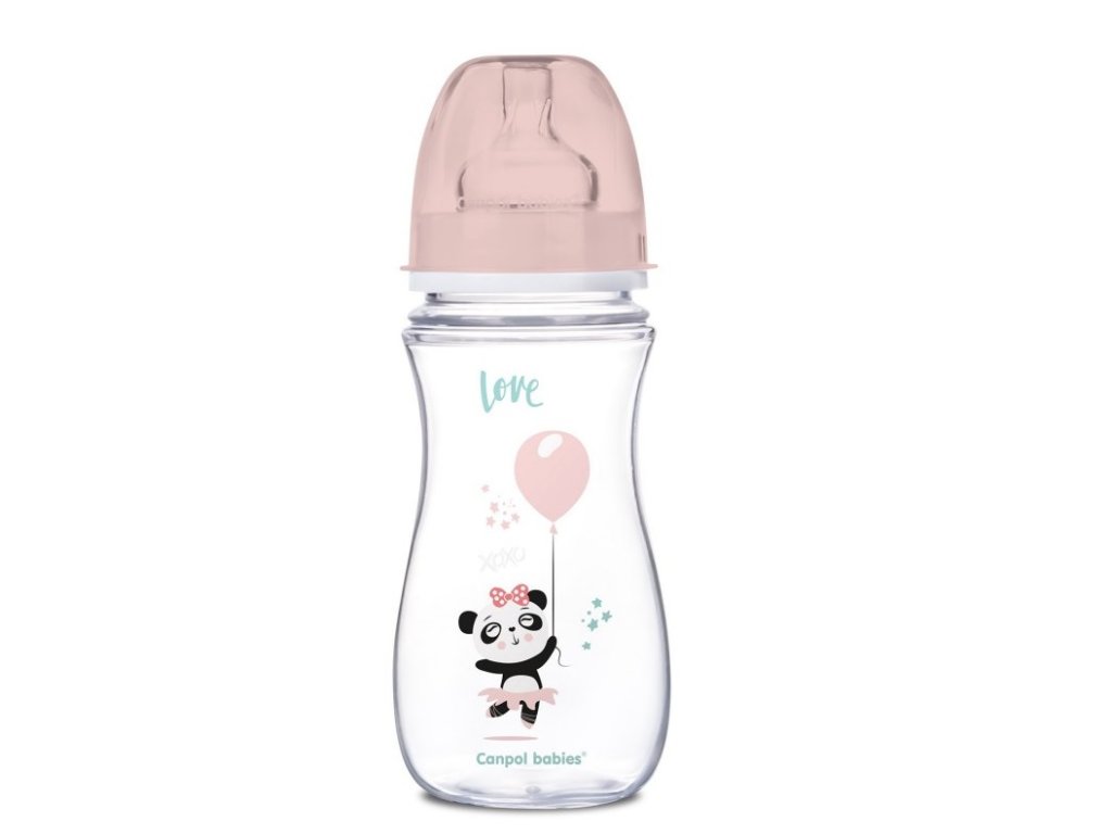 Canpol Babies Antikolik. lahvička se širokým hrdlem, Exotic Animals, 300 ml - růžová
