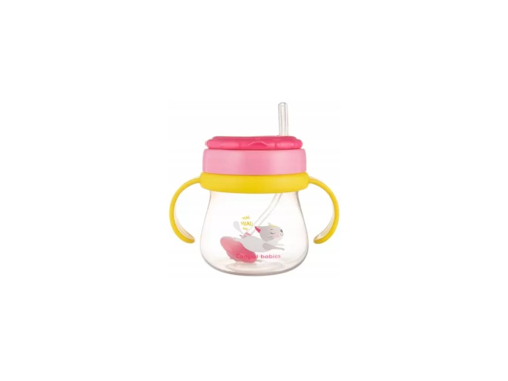 Canpol babies Hrníček sportovní se slámkou a závažím 250 ml, kočička - růžová