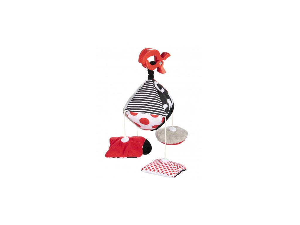 Kontrastní závěsná hračka s klipem z kolekce SENSORY je určena již pro nejmenší děti. Hračku je možné pomocí klipu připevnit na požadované místo - kočárek, postýlku nebo autosedačku. Stimuluje zrak díky červené a černé barvě, kterou dítě vidí jako první. Ruční praní na 30°C mýdlovým prostředkem.Doplňkové parametry