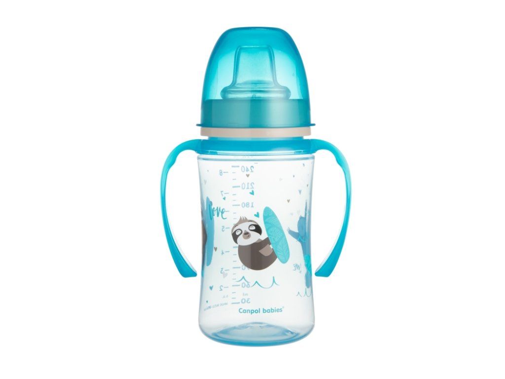 Hrneček s úchyty. Obsahuje unikátní nevylévací ventil, který umožňuje dítěti samostatně pít bez rozlévání tekutiny. Praktické úchyty usnadňují držení hrníčku v malých ručičkách. Kryt brání ušpinění pítka. Obsah hrníčku je 240ml. Vhodné pro děti od 6-ti měsíců. Bez BPA.Doplňkové parametry