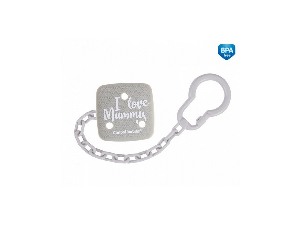 Canpol babies Řetízek na dudlík I Love Mummy - šedý