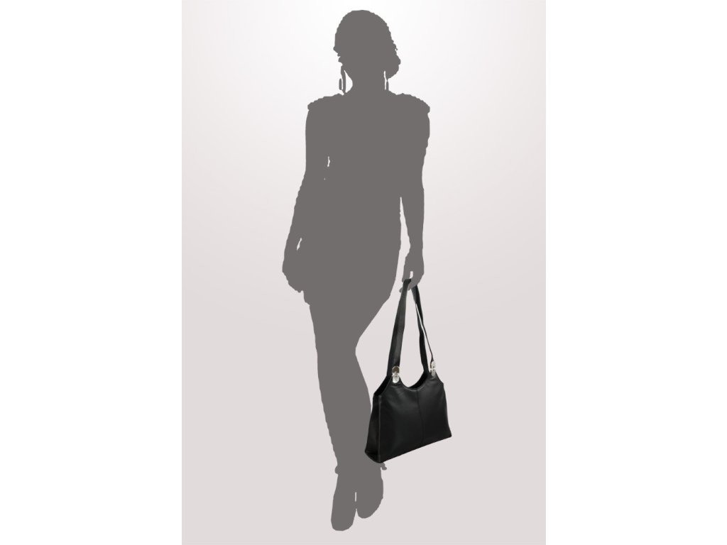 Elegantní dámská kožená kabelka se dvěma uchy přes rameno z pravé hovězí kůže (NDM) představuje ideální kombinaci nadčasového stylu, praktičnosti a kvalitního zpracování. Vyrobena z jemně strukturované černé kůže, působí sofistikovaně a zároveň odolně – perfektní pro každodenní i pracovní využití.