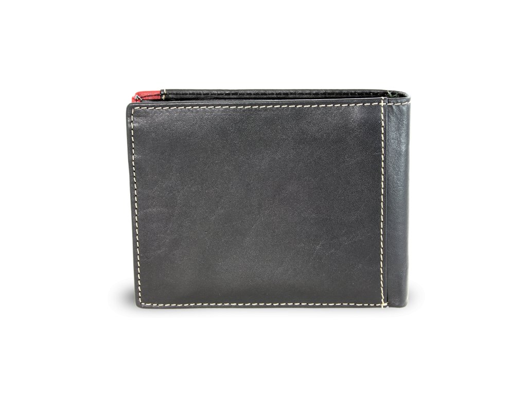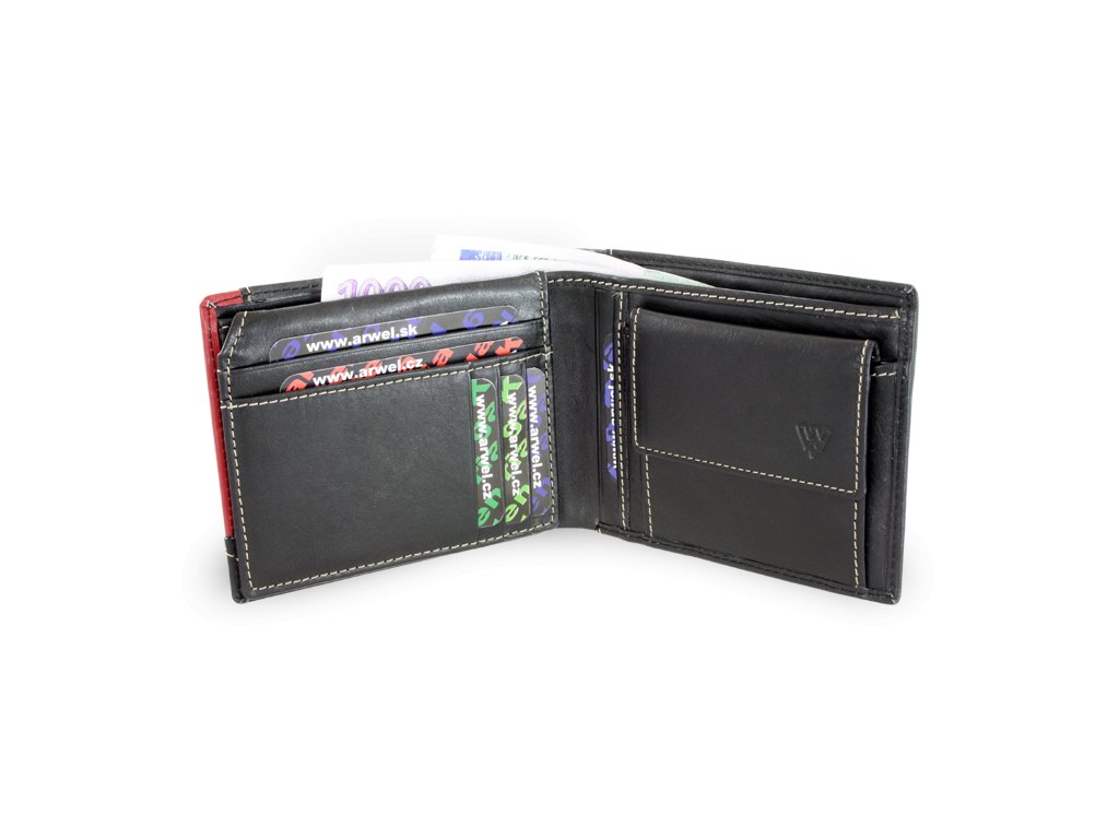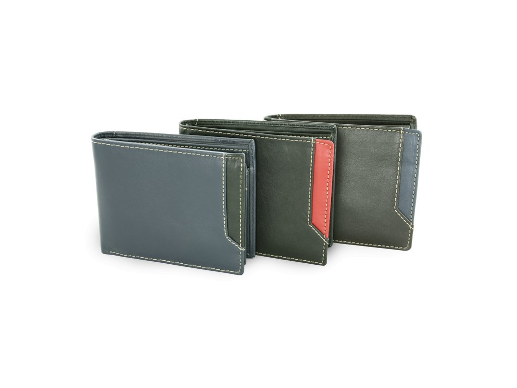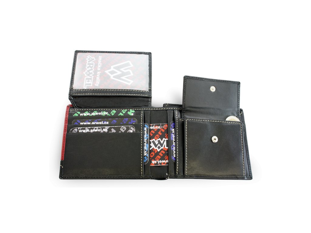 2 přihrádky na bankovky a 1 kapsa na mince, 12 kapes na kreditní karty, 1 průhledná kapsa velikosti osobních dokladů.