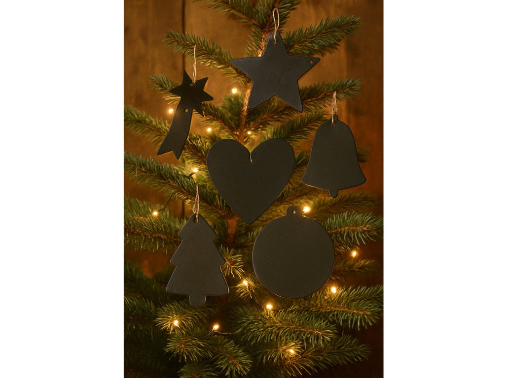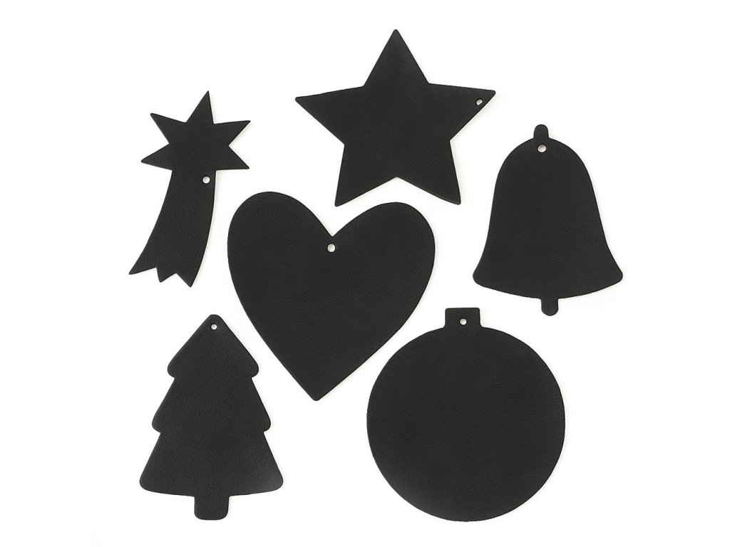 Vánoční sada kožených ozdob na stromeček obsahuje hvězdu, kometu, zvonek, srdce, stromeček a baňku. Dodáváme s koženou šňůrkou. Každá ozdoba má velikost cca 8 cm.