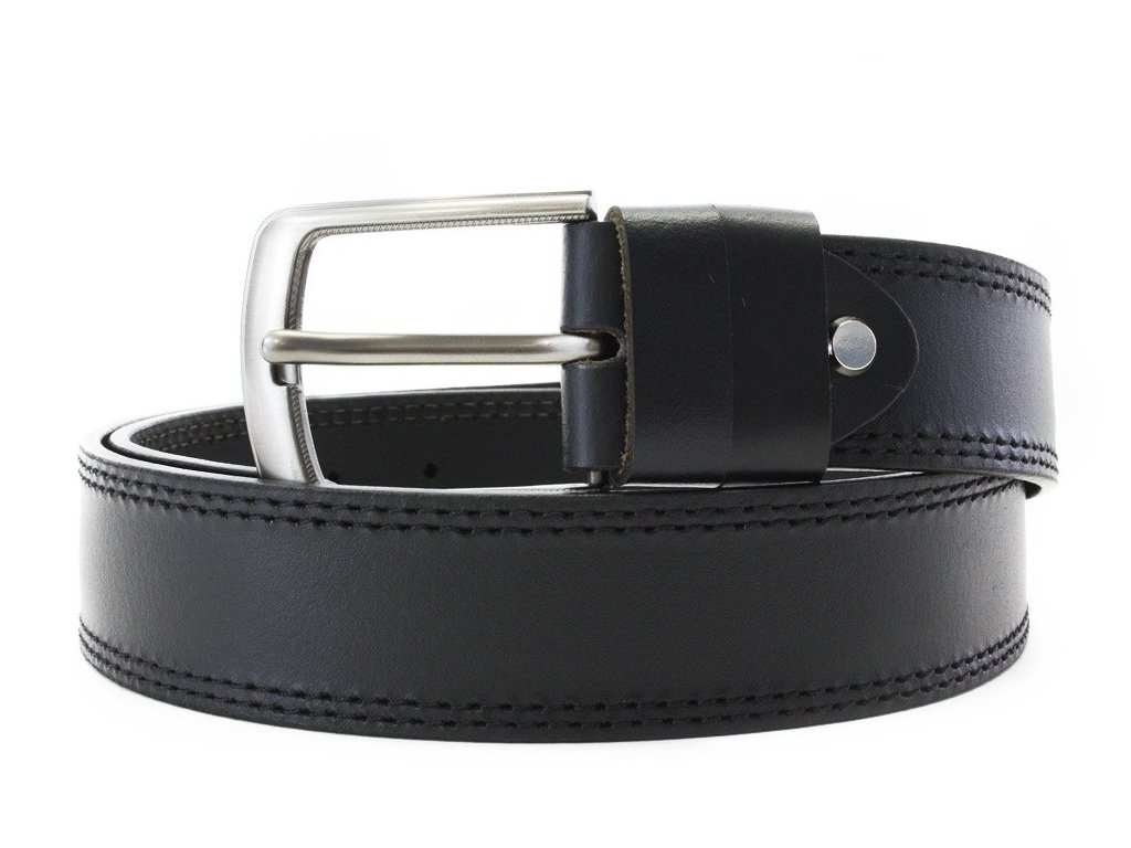 Pánský kožený pánský opasek je určený k nošení do džínových, plátěných nebo jiných volnočasových kalhot. Svým designem a šíří odpovídá současným trendům a požadavkům. Opasek má masivní kovovou sponu a řemen je vyrobený z jednoho kusu pravé hovězí kůže. Barva pásku by měla být sladěná s barvou oblečení nebo obuvi.