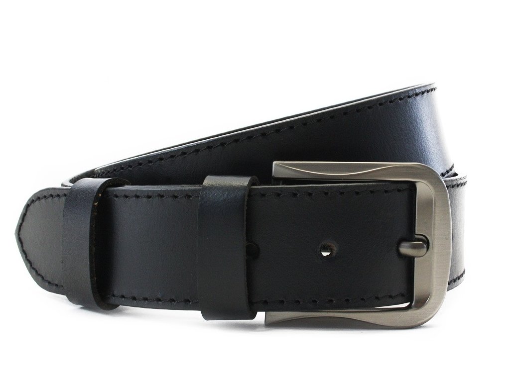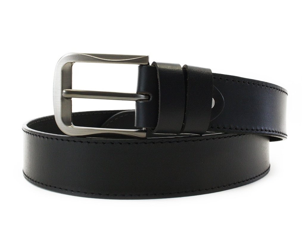 Černý prošívaný kožený pánský opasek 913-5001-1-60/60-9009-40