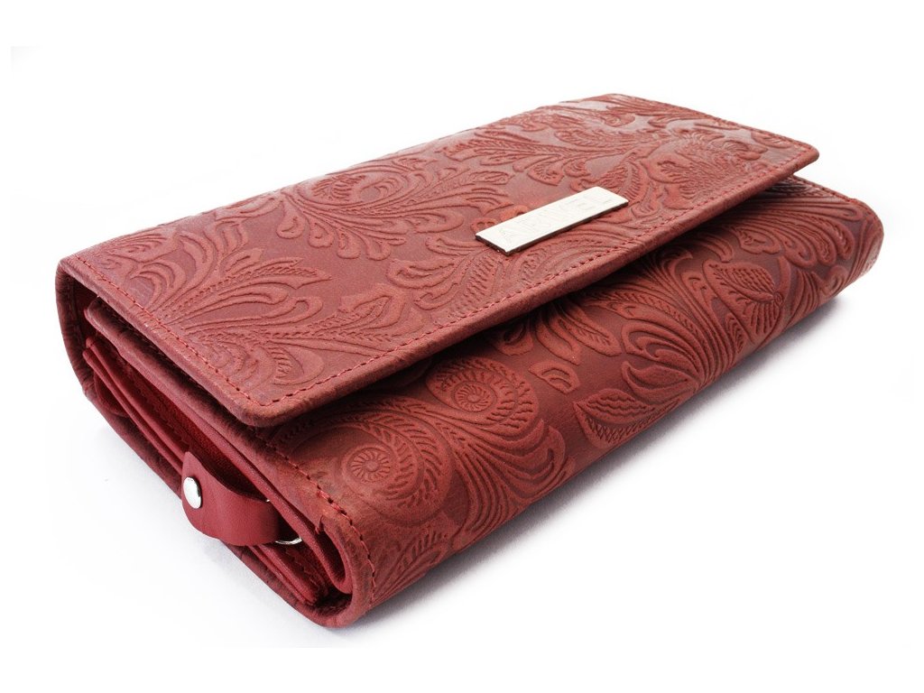 Červená dámská kožená klopnová peněženka se vzorem 511-2235-31