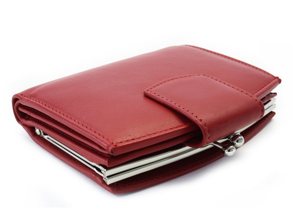 Červená dámská kožená rámová peněženka se zápinkou 511-4357-31