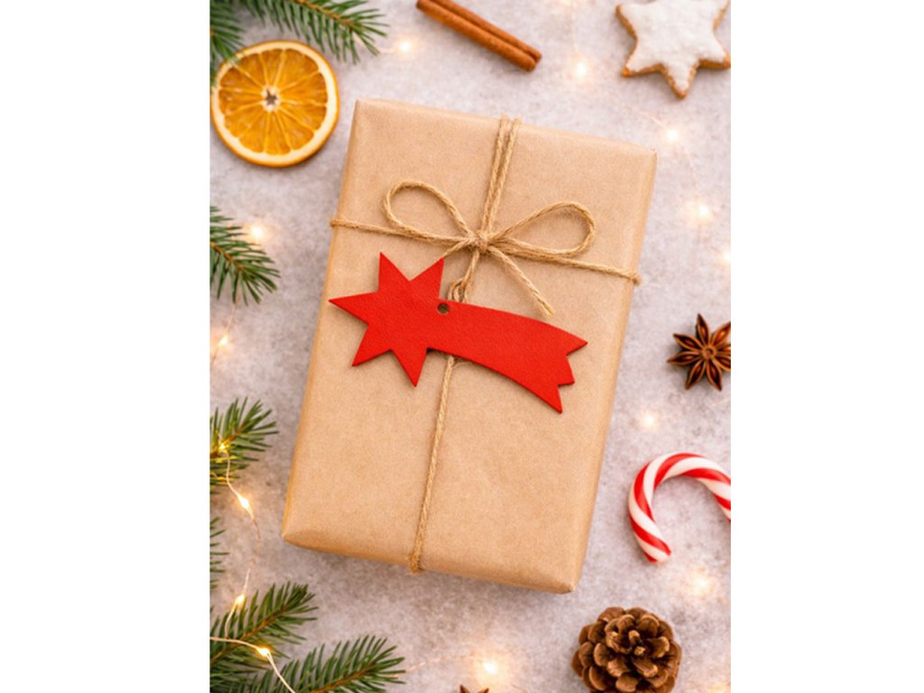 Kometa z pravé kůže je ideální jako ozdoba na vánoční stromeček i jako originální visačka na dárky.