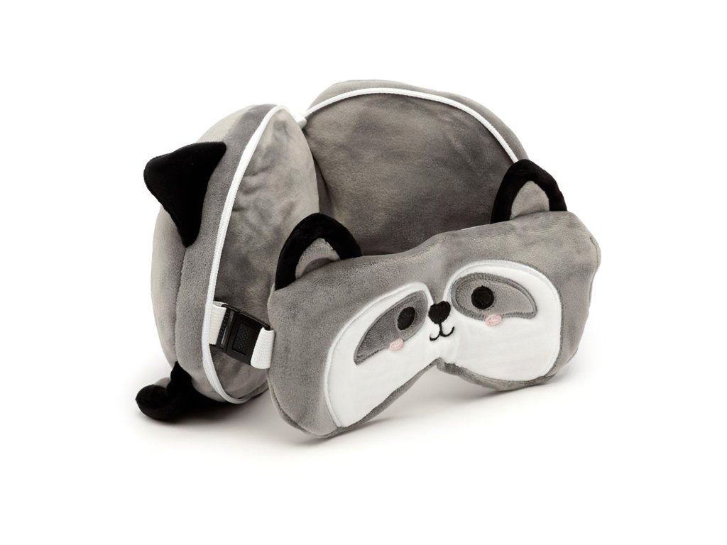 Užijte si pohodlný spánek a relaxaci i během cestování s títmo skvělým cestovním polštářem a maskou na oči v designu roztomilého mývala. S touto sadou si můžete dopřát maximální pohodlí a odpočinek, ať už jste v letadle, vlaku, autě nebo autobuse. Cestovní polštář je navržen tak, aby poskytoval optimální podporu pro vaši hlavu a krk, zatímco maska na oči blokuje rušivé světlo a umožňuje vám naplno relaxovat. S motivem roztomilého mývala je tato sada nejenom praktická, ale i zábavná pro vaše cestování. Sada je vyrobena z příjemného pohodlného plyšového materiálu. Maska na oči je připevněna k polštářku gumičkou, která je na jedné straně rozepínatelná.