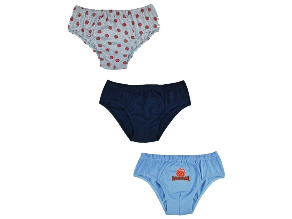 Chlapecké bavlněné slipy, Basketball- 3ks v balení, šedé/granát/modrá