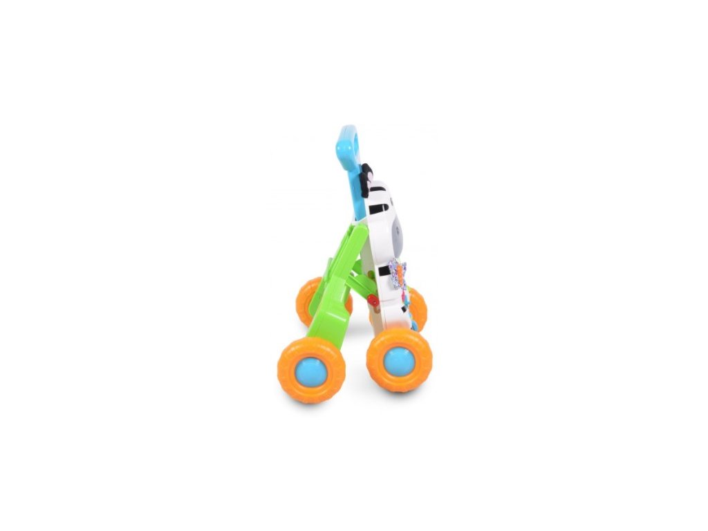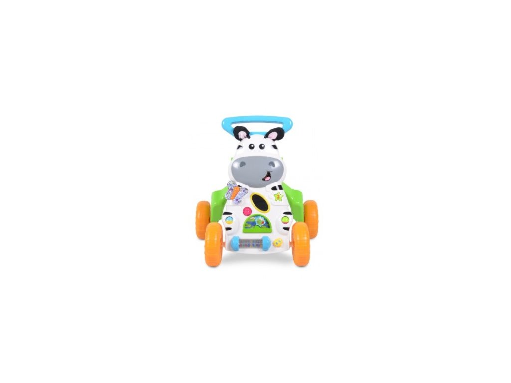 Chodítko 2v1 Zebra. Chodítko má jasné barvy a hudební palubní desku. Barevná tlačítka, melodie a různé postavičky pomohou miminku zabavit se a hrát si s radostí a zároveň se naučit rozlišovat barvy a tvary. Rozvíjí zrakové schopnosti dítěte. Rukojeť s nastavitelnou výškou. Zlepšuje mysl, motoriku a koordinaci ruka-oko. Hračka je vhodná pro děti od 12 měsíců. Funguje na 2 x 1,5V AA baterie (nejsou součástí). Rozměry: 32 x 48 x 46 cm.Doplňkové parametry