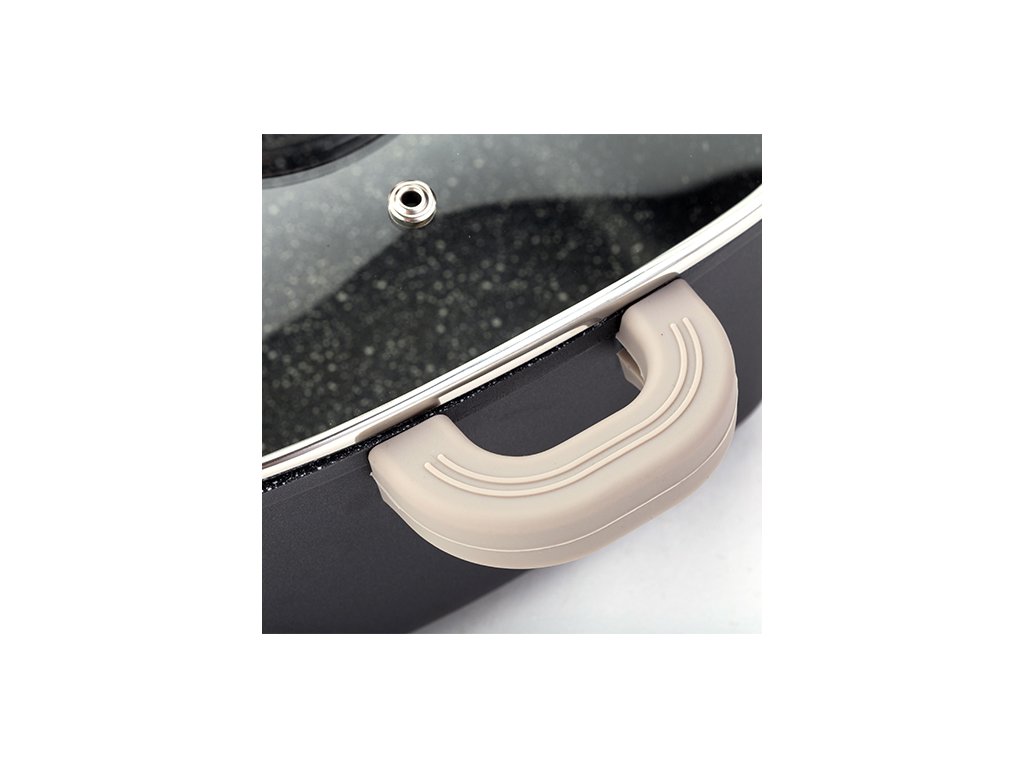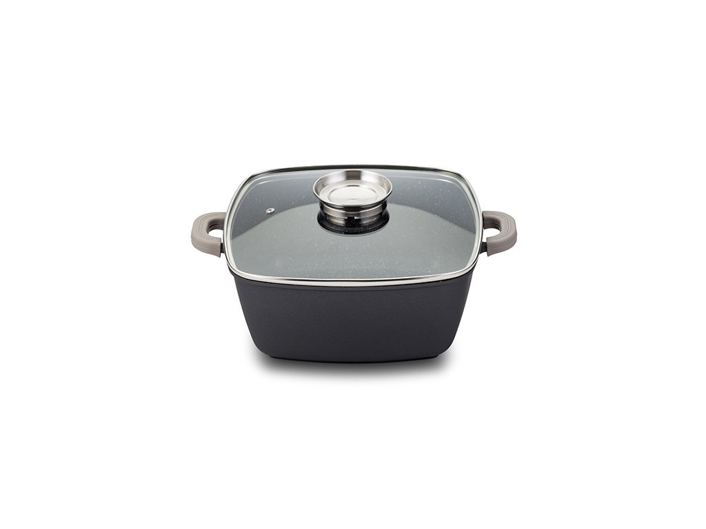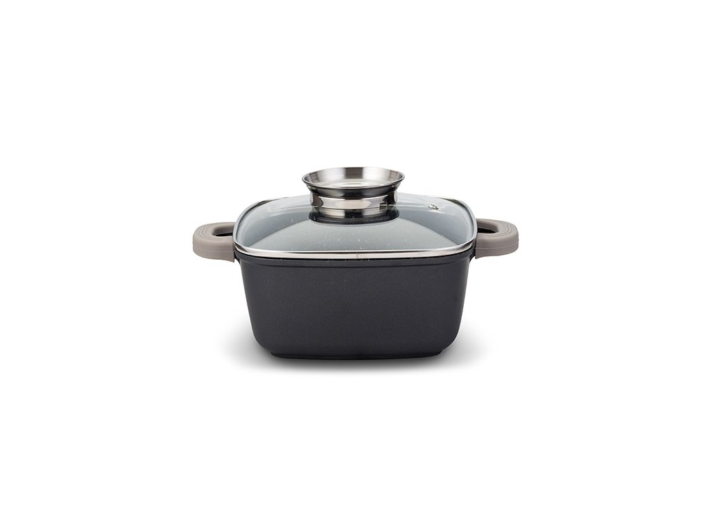 Zapékací hrnec o průměru 20 cm je ideální pro každodenní použití v kuchyni. Kombinuje kvalitu s moderním designem. Jedná se o praktický hrnec vyrobený z litého hliníku s nepřilnavým povrchem bez PFOA. Ergonomické rukojeti s odnímatelnými silikony pro příjemné a bezpečné uchopení. Součástí je poklice s odolným termo úchytem. Vynikající rozložení teploty pro dokonalou přípravu jídel. Snadno se čistí, je vhodný i do myčky na nádobí. Hrnec je vhodný i pro použití v troubě (bez úchytů). Hrnec má průměr základny 14 cm, výšku 13 cm a objem 2,6 l. Váha 1,2 kg