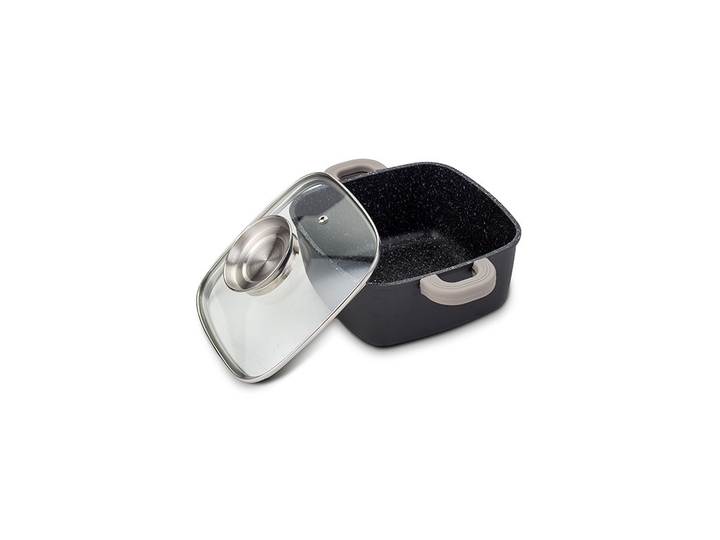 Zapékací hrnec o o rozměrech 24x24 cm je ideální pro každodenní použití v kuchyni. Kombinuje kvalitu s moderním designem. Jedná se o praktický hrnec vyrobený z litého hliníku s nepřilnavým povrchem bez PFOA. Ergonomické rukojeti s odnímatelnými silikony pro příjemné a bezpečné uchopení. Součástí je poklice s odolným termo úchytem. Vynikající rozložení teploty pro dokonalou přípravu jídel. Snadno se čistí, je vhodný i do myčky na nádobí. Hrnec je vhodný i pro použití v troubě (bez úchytů). Hrnec má průměr základny 17 cm, výšku 15 cm a objem 4 l. Váha 1,7 kg