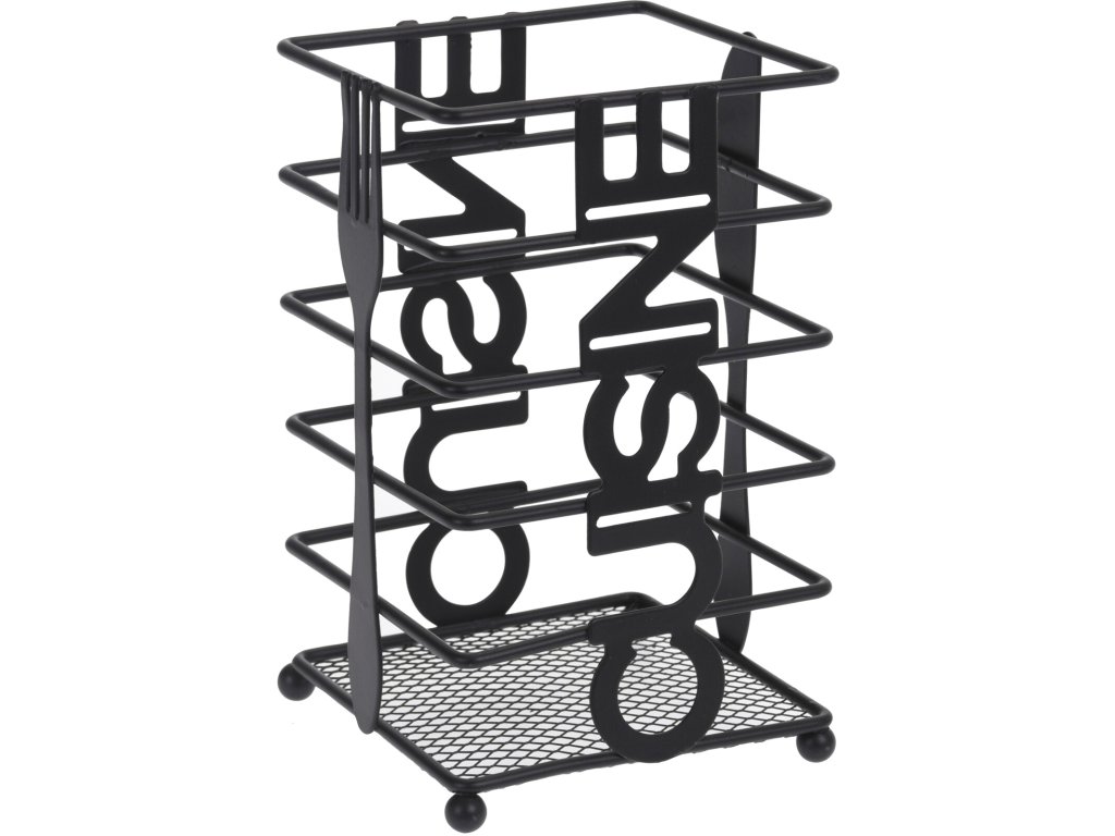 Tento drátěný stojan na příbory Cuisine Vám může posloužit jako stojan na příbory, ale i jako jejich odkapávač. Díky stálé cirkulaci vzduchu zabraňuje hromadění vlhkosti. Díky svému originálnímu designu se stane atraktivním doplňkem Vaší domácnosti. Rozměry 10 x 10x 16,5 cm