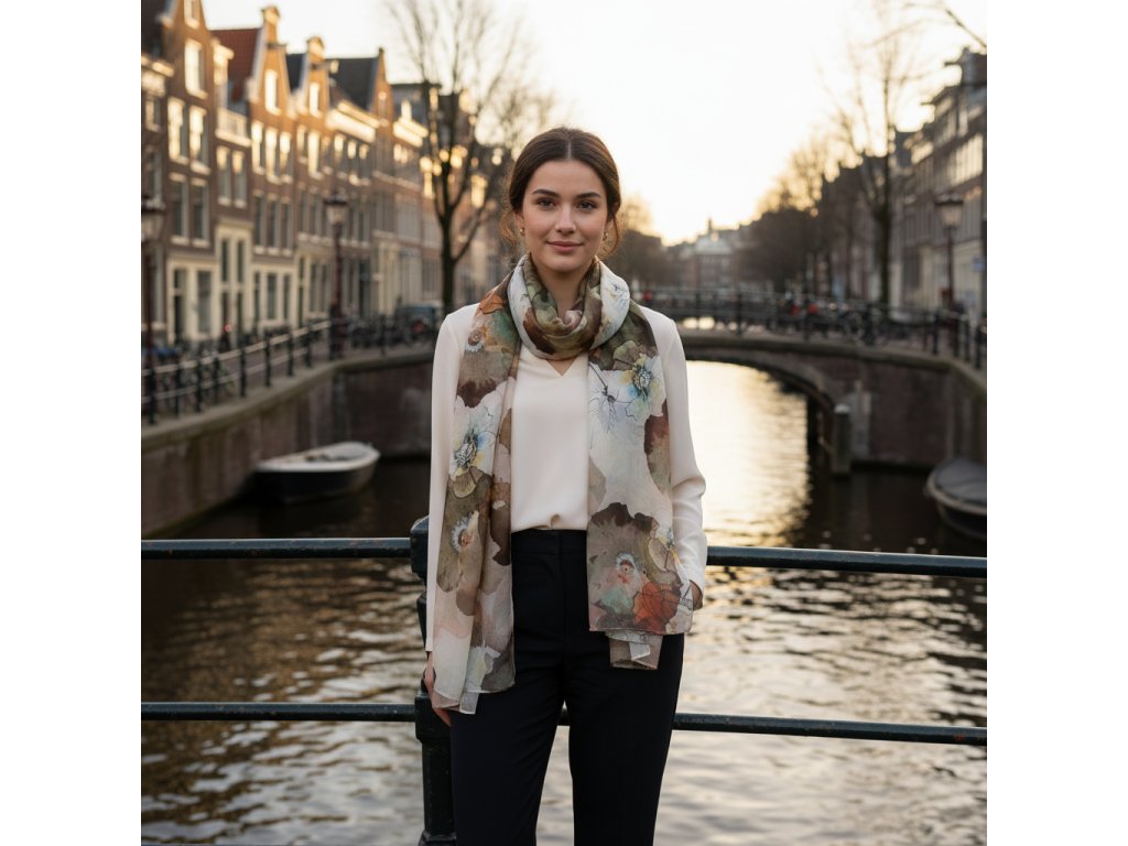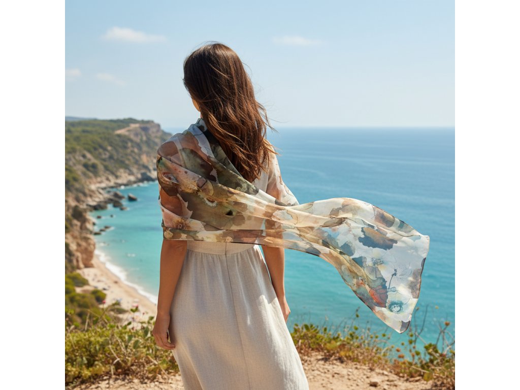 Dámska barebná šatka s květinovým vzorom 180 × 70 cm, Florela-wa-134