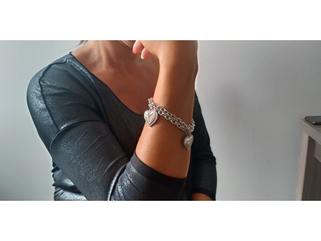 Dámsky ocelový náramek se srdíčky + dárkové balení