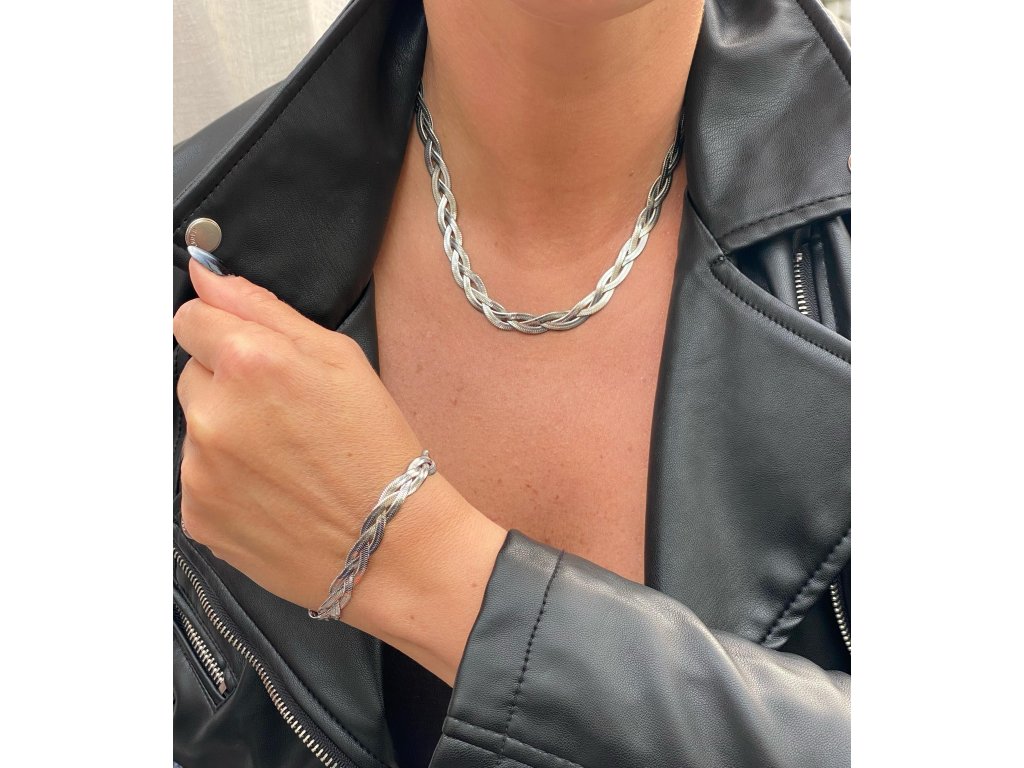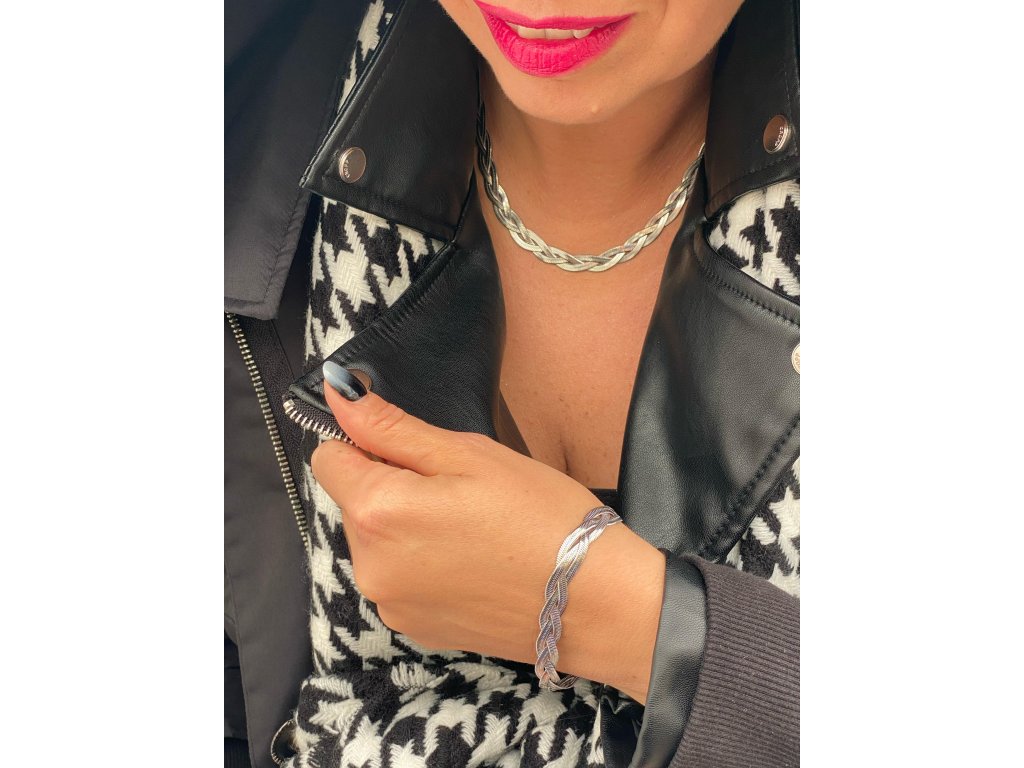 Dámský plochý náhrdelník s náramkem z chirurgické oceli KM1321 + dárkové balení