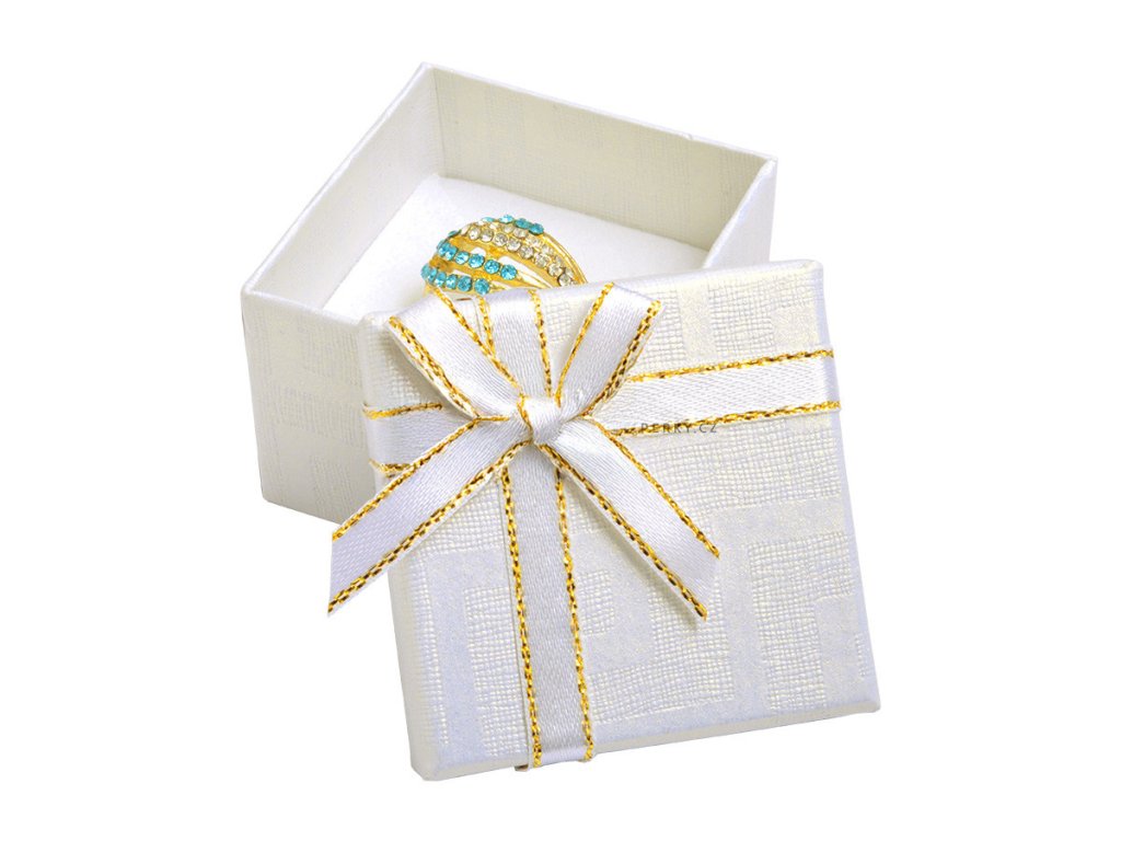 Dárková krabička na šperky, bílá se zlatou nitkou