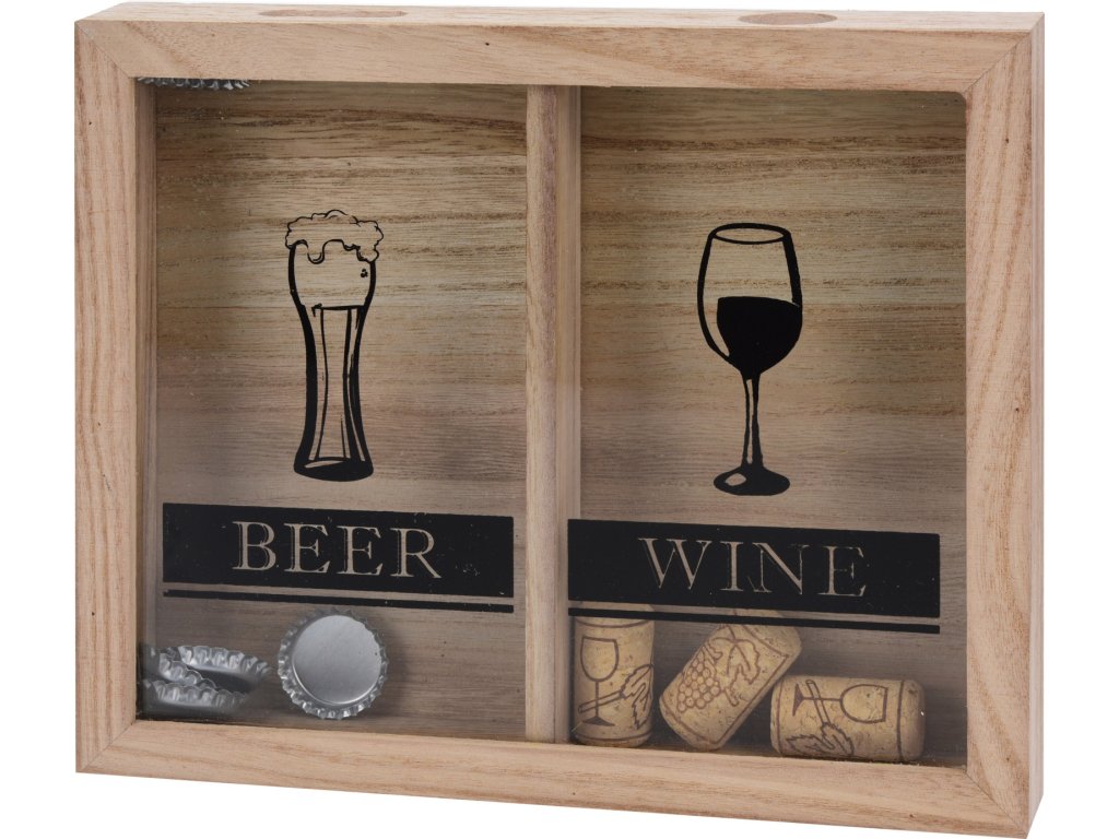 Bydlíte v domácnosti, kde se pije převážně víno nebo pivo, nebo obojí? Pořiďte si originální dekoraci, v níž vynikne vaše sbírka uzávěrů. Dekorativní skříňka na korky z vína a víčka z pivních lahví je určena pro ženy, které si rady odpočinou u skleničky dobrého vína, ale i pro muže, kteří si dopřejí svou orosenou odměnu. Díky průhlednému okénku máte přesný přehled. Dekorativní skříňka na korky z vína a víčka z pivních lahví je netradiční dárek, se kterým potěšíte hned dvě skupiny lidí.