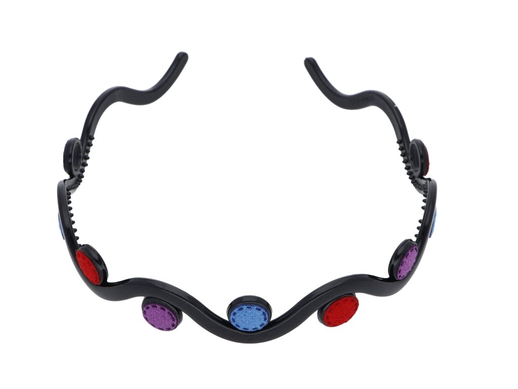 Plastová čelenka s puntíkem. Balení obsahuje 1 ks. Rozměr: šířka čelenky 0,6 cm. Rozměr ozdoby průměr 1,3 cm.