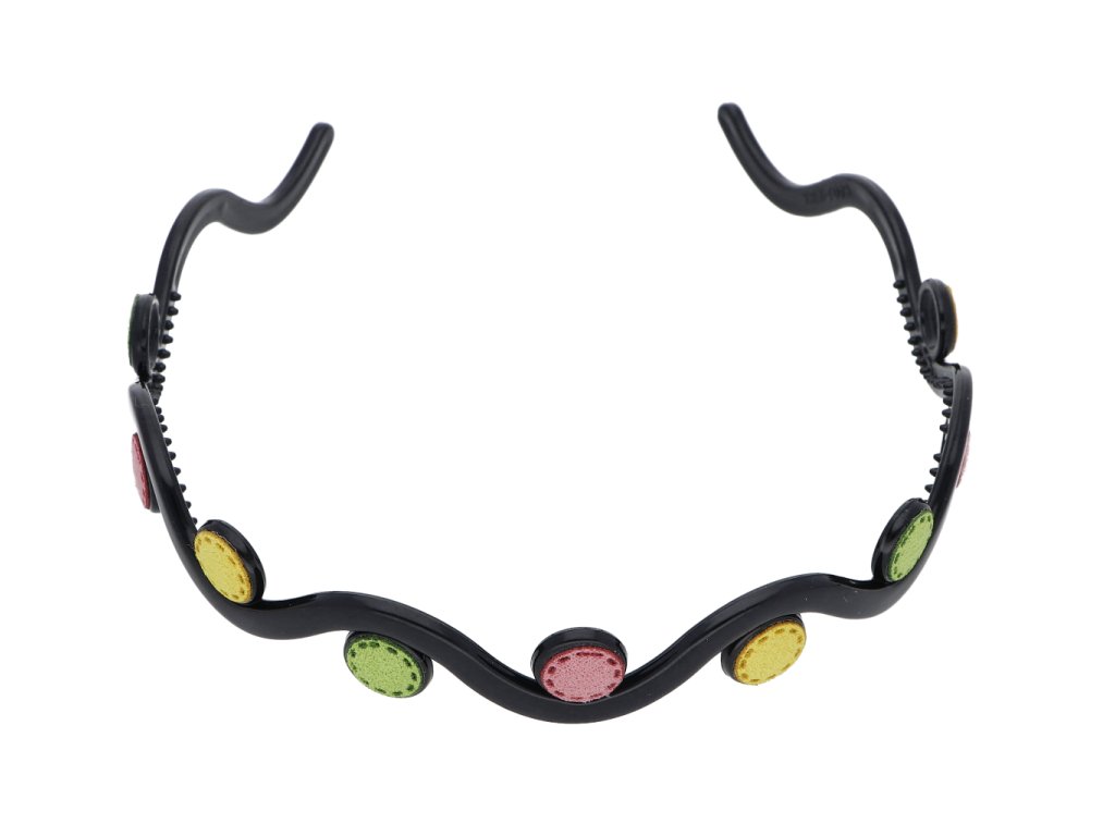 Plastová čelenka s puntíkem. Balení obsahuje 1 ks. Rozměr: šířka čelenky 0,6 cm. Rozměr ozdoby průměr 1,3 cm.