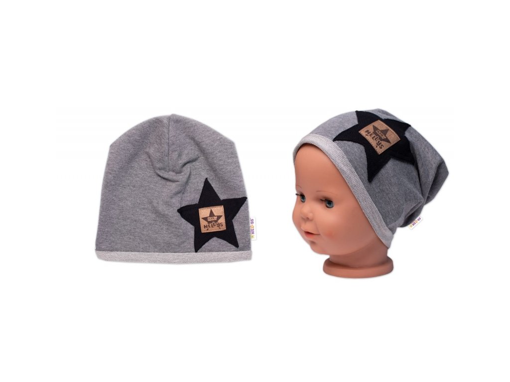 Dětská čepice bavlna, Baby Star, Baby Nellys, šedá