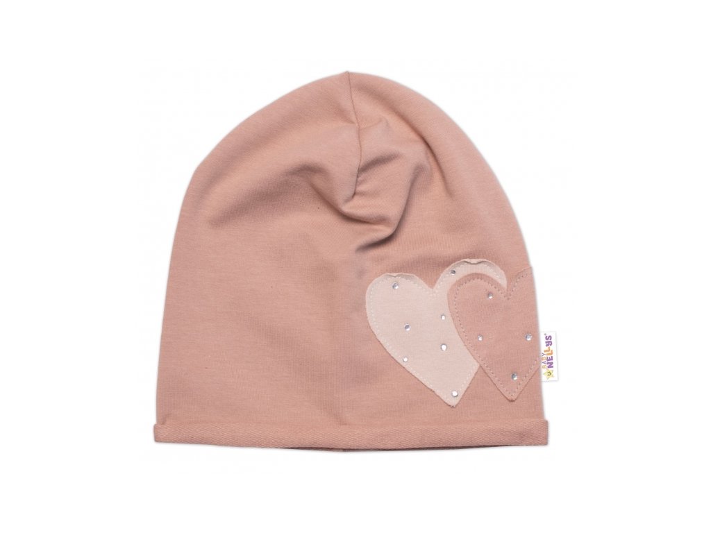 Dětská čepice bavlna, Srdíčka s kamínky, Baby Nellys, cappuccino