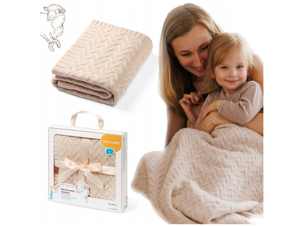 Dětská deka z merino vlny 75 x 100 cm, sv. béžová