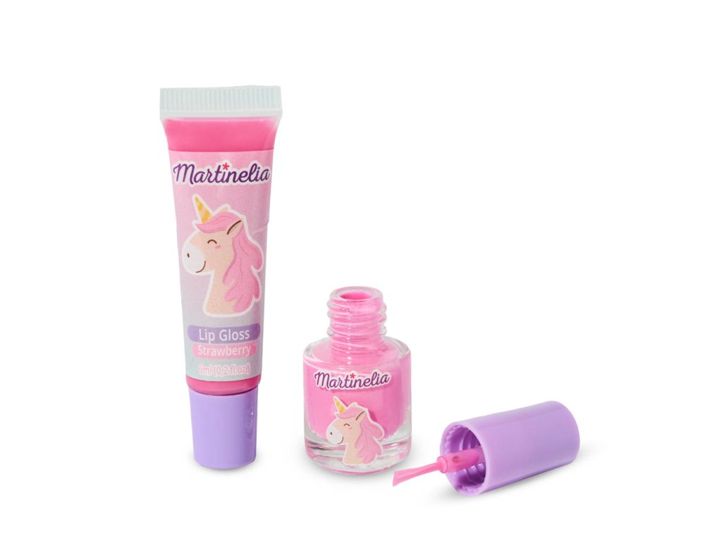 Dětská kosmetická sada Roztomilý jednorožec je kouzelným doplňkem pro malé slečny, které chtějí dodat svému vzhledu špetku pohádkového šarmu. Tento kompaktní set zahrnuje lesk na rty a lak na nehty, což poskytuje vše potřebné k vytvoření jemného a hravého líčení. Celý set je laděn do růžových a fialových odstínů s roztomilými motivy jednorožce, které dodávají hravost a magickou atmosféru. Díky své velikosti je ideální na cesty i pro domácí zábavu.