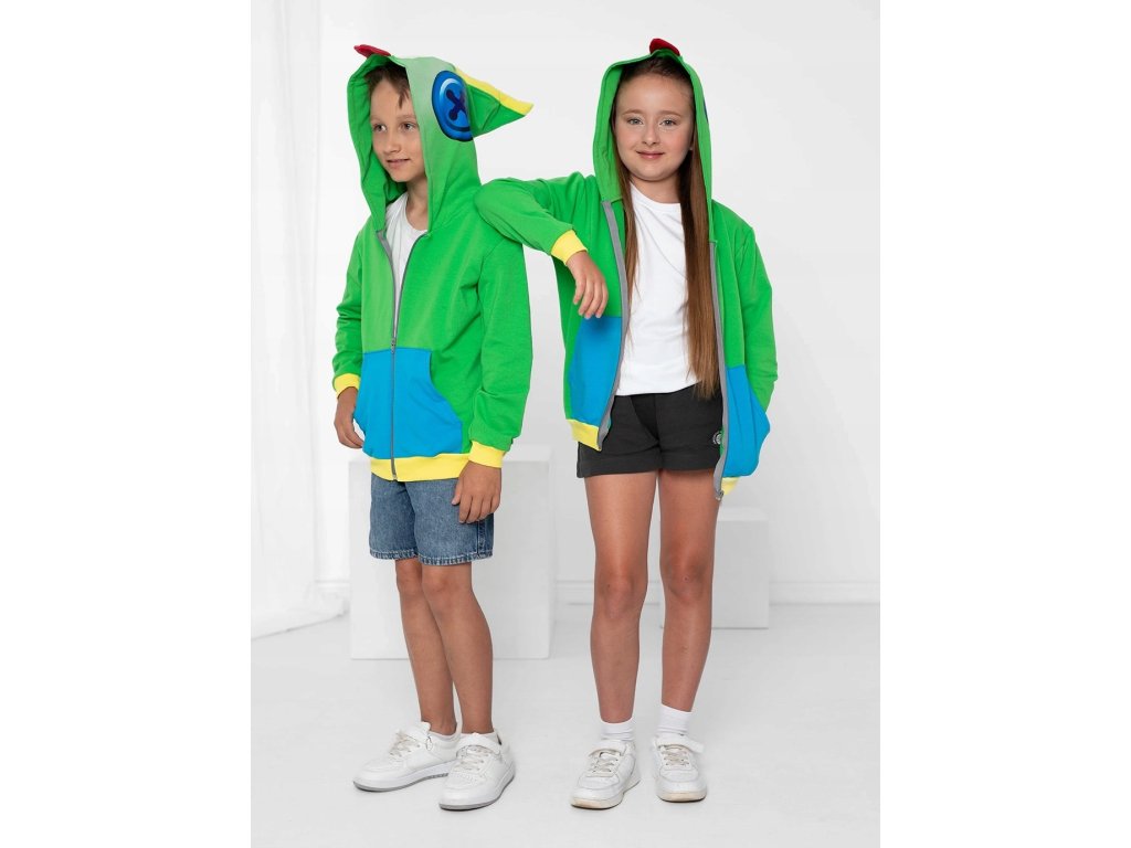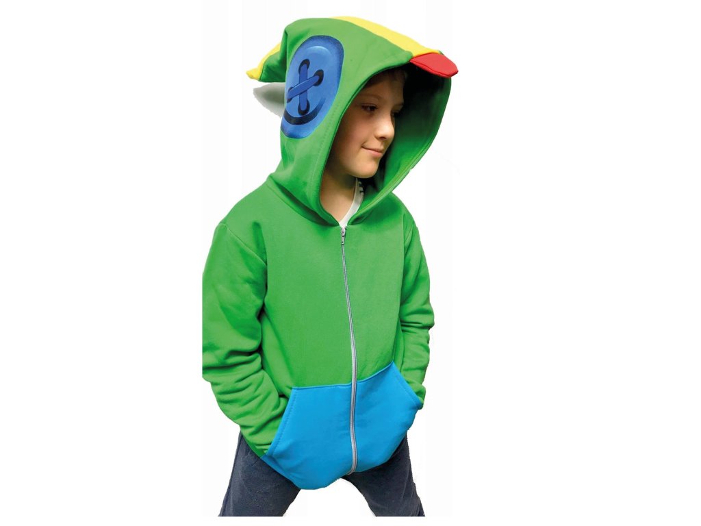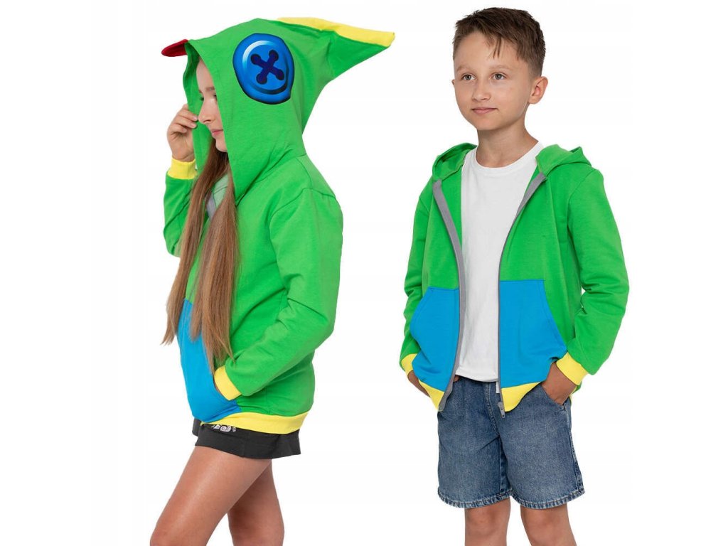Mikina vyniká svým věrným designem, který napodobuje ikonický vzhled Leonova outfitu – zářivě zelená barva, modré kapsy a výrazná kapuce s ušima a zobáčkem dodávají oblečení jedinečný herní styl. Díky detailně propracovanému potisku na kapuci, který zobrazuje Leonovy charakteristické oči, se dítě může cítit jako skutečný herní hrdina.